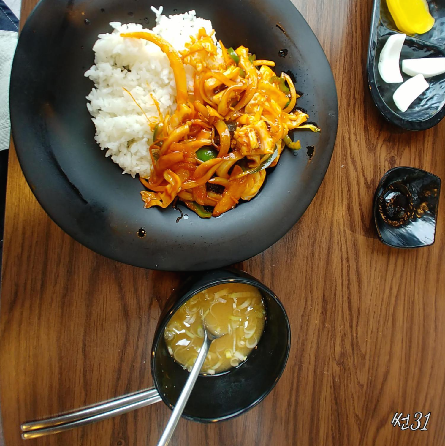 얼떨결에 요일메뉴 오징어덮밥시킸어요.