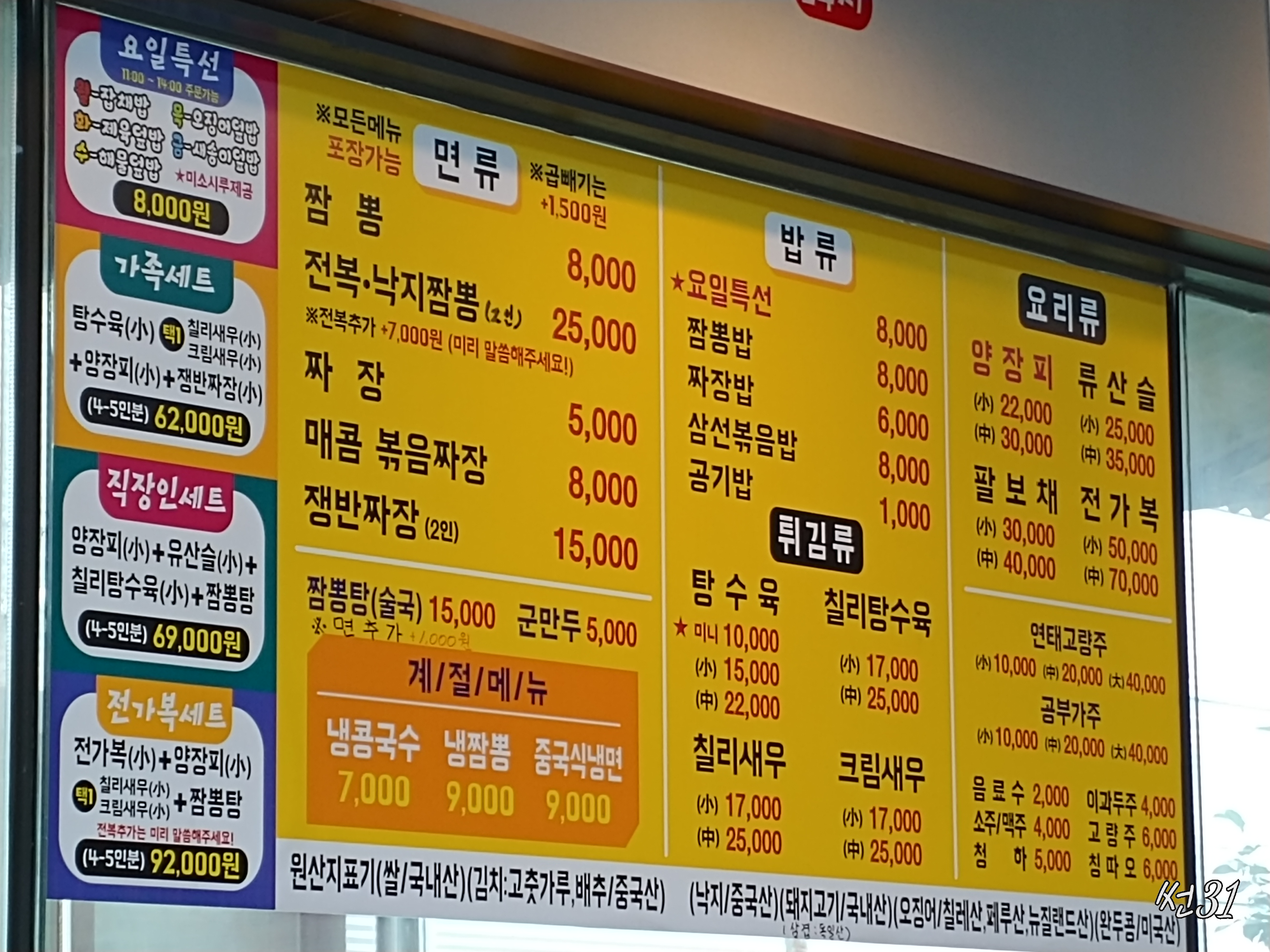 일하러 갔다가 평택 1번국도변에 짬뽕파크24시 못보던 새로운 큰간판이 보여서 짬뽕으로 가자 하고 들어왔더니 짬뽕보다 요일마다 다른 요일메뉴을 다들 따악 주문하시네요.