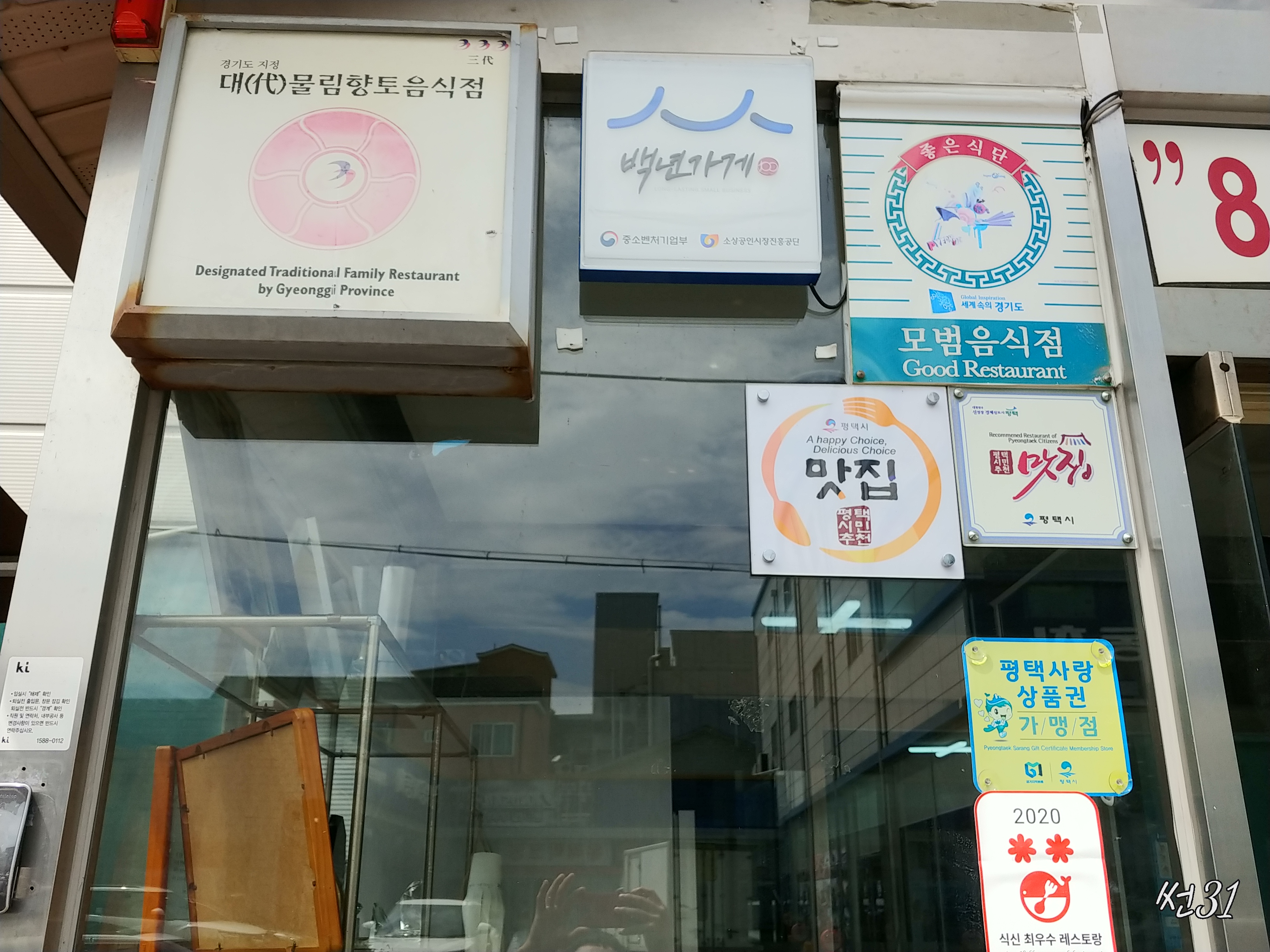 셀수없을정도로 많은 맛집 인증마크 입구에 붙어있는데