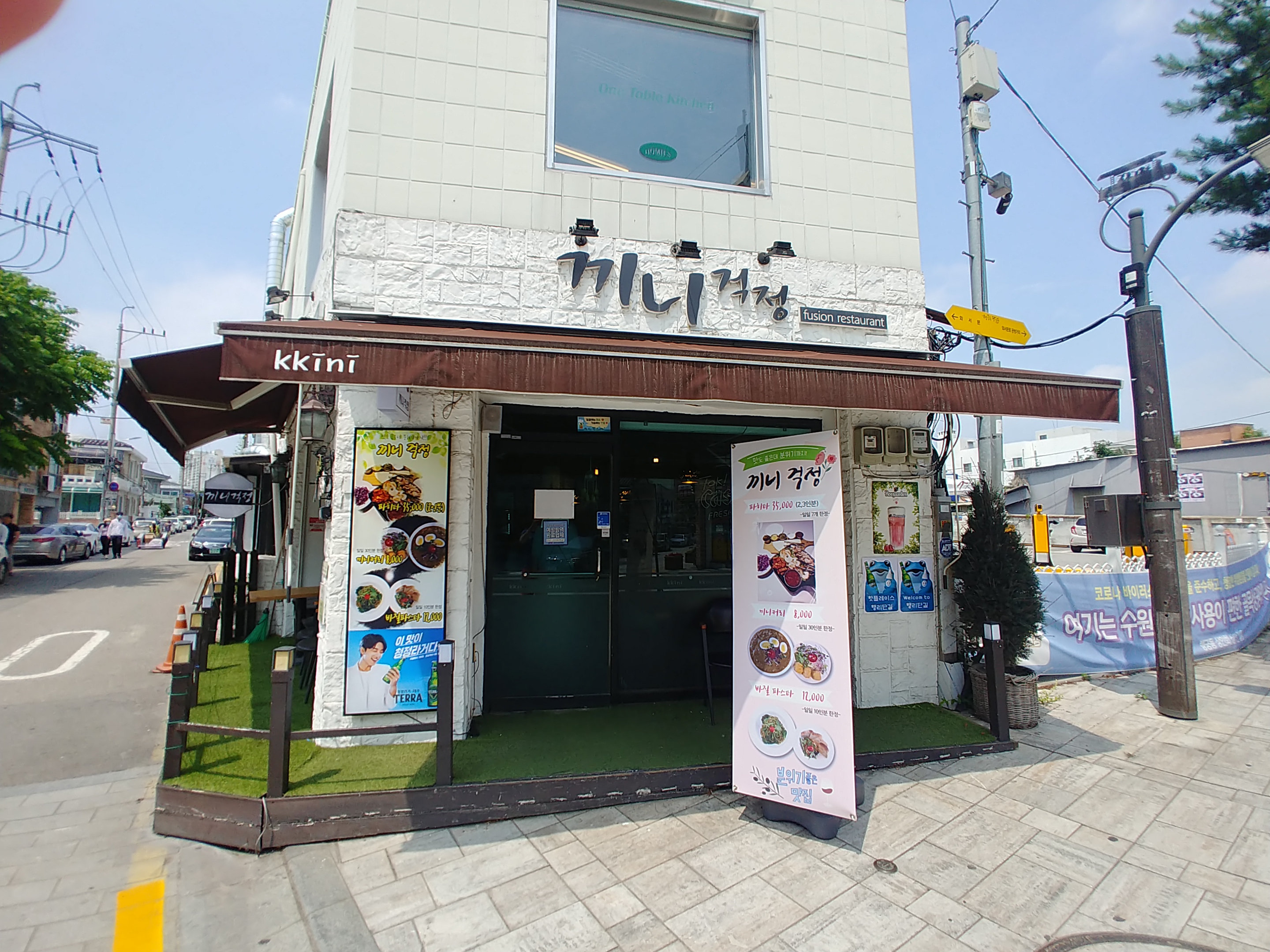 간판 밑에 퓨전음식점이라고 영어로 적혀 있군요