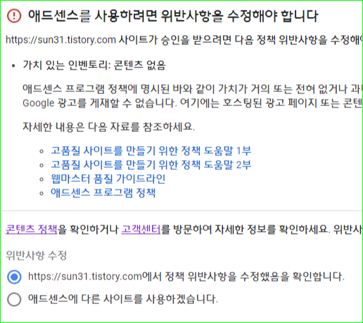 이상 썬31의 애드센스 신청 승인거절과 재도전 그리고 애드센스 승인까지의 과정과