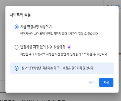 그렇게 하고 사이트에 적용 지금 변경사항 적용하기 누르고 중요한것이