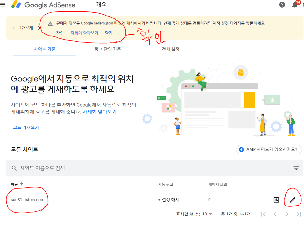 연필모양을 누르면 이제 제대로된 애드센스 자동광고 설정을 들어가게됩니다.