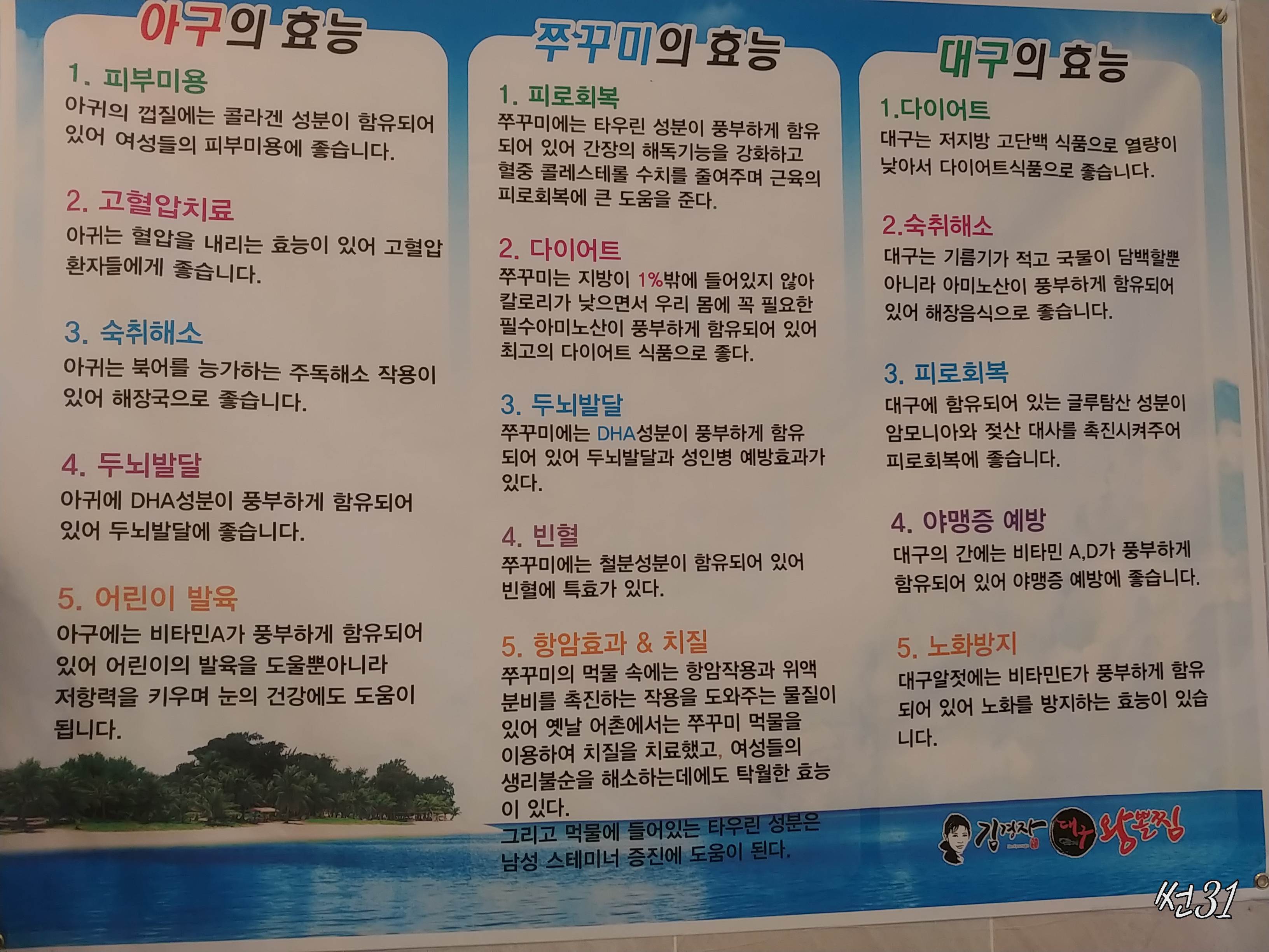 3. 숙취해소: 아귀는 복어을 능가하는 해독효과가 있어서 해장국으로 안성맞춤입니다