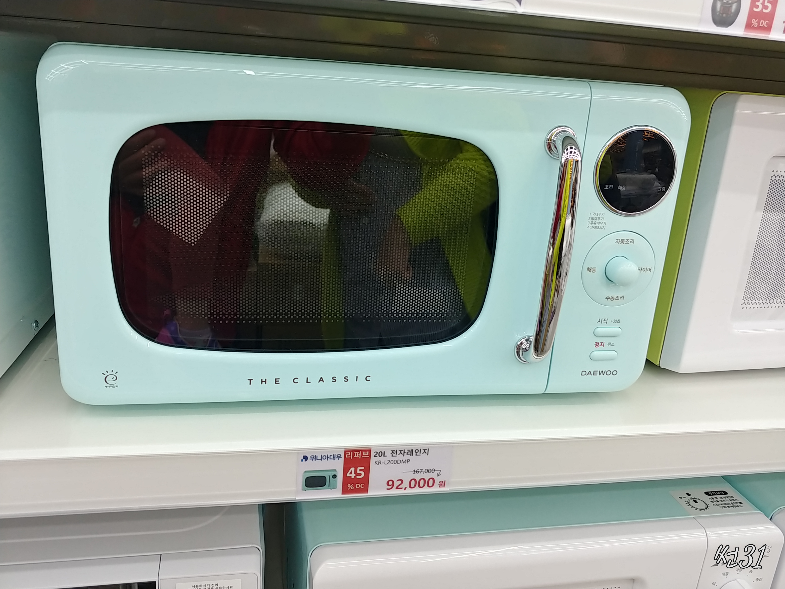 하늘색 이 전자렌지가 맘에 들었는데 고민하다가 조금만 더 지금 전자렌지 더 사용하고 사기로 하고 구경만 실컷했습니다.