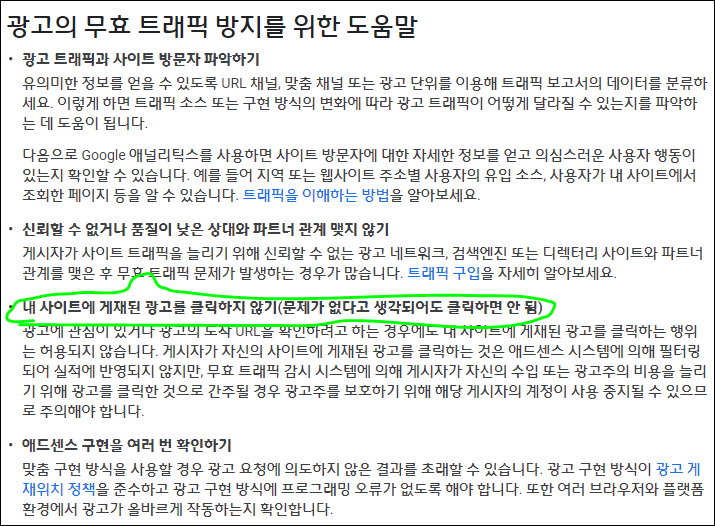 내 사이트에 게재된 광고을 클릭하지 않는것입니다.(무조건 내글 광고 클릭금지!!!)