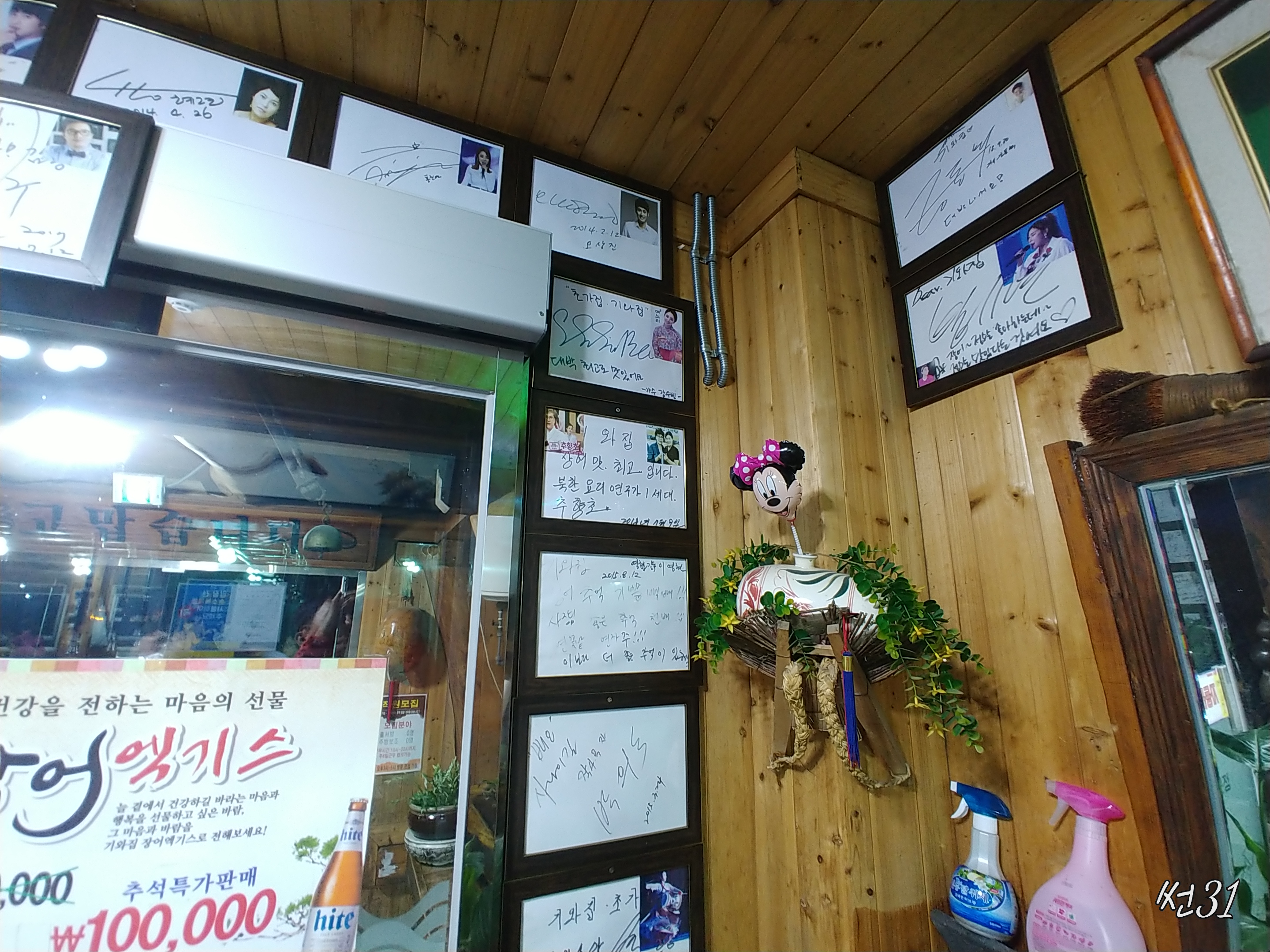 여튼 엄청나게 유명한 연예인부터 이름도 잘 모르겠는 연예인까지 수십면의 사인이 액자로 남겨서 온벽을 가득 채워져있습니다.