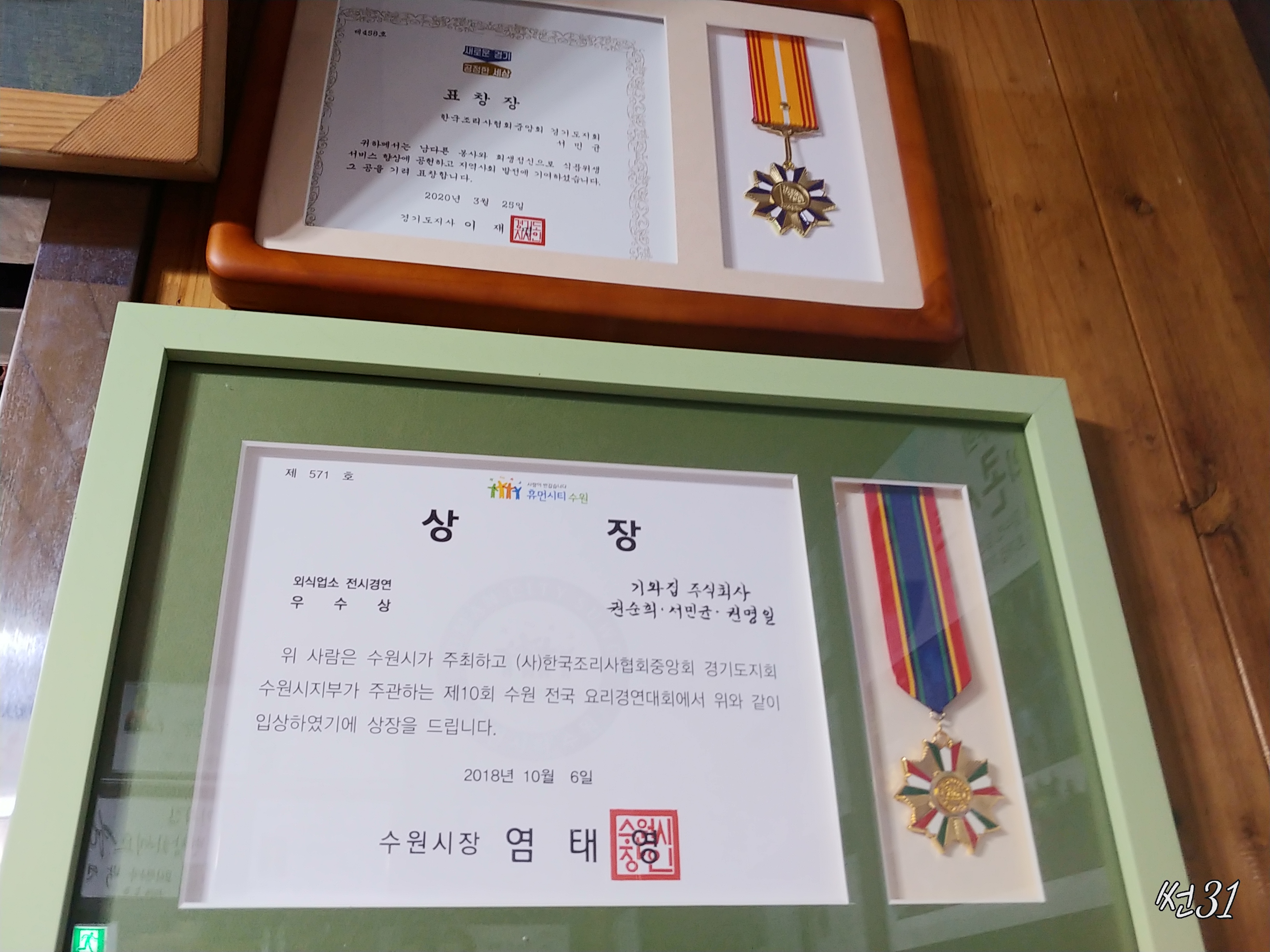 수원시에서 주관하는 수원전국 요리경연대회에서 우수상을 받아서 염태영시장에게 받은 상도 있어요.