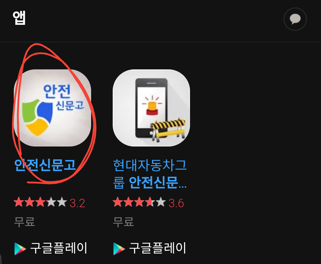 앰스토어에서 검색을 안전신문고를 하게되면 위사진과같이 "안전신문고"라고 나옵니다.