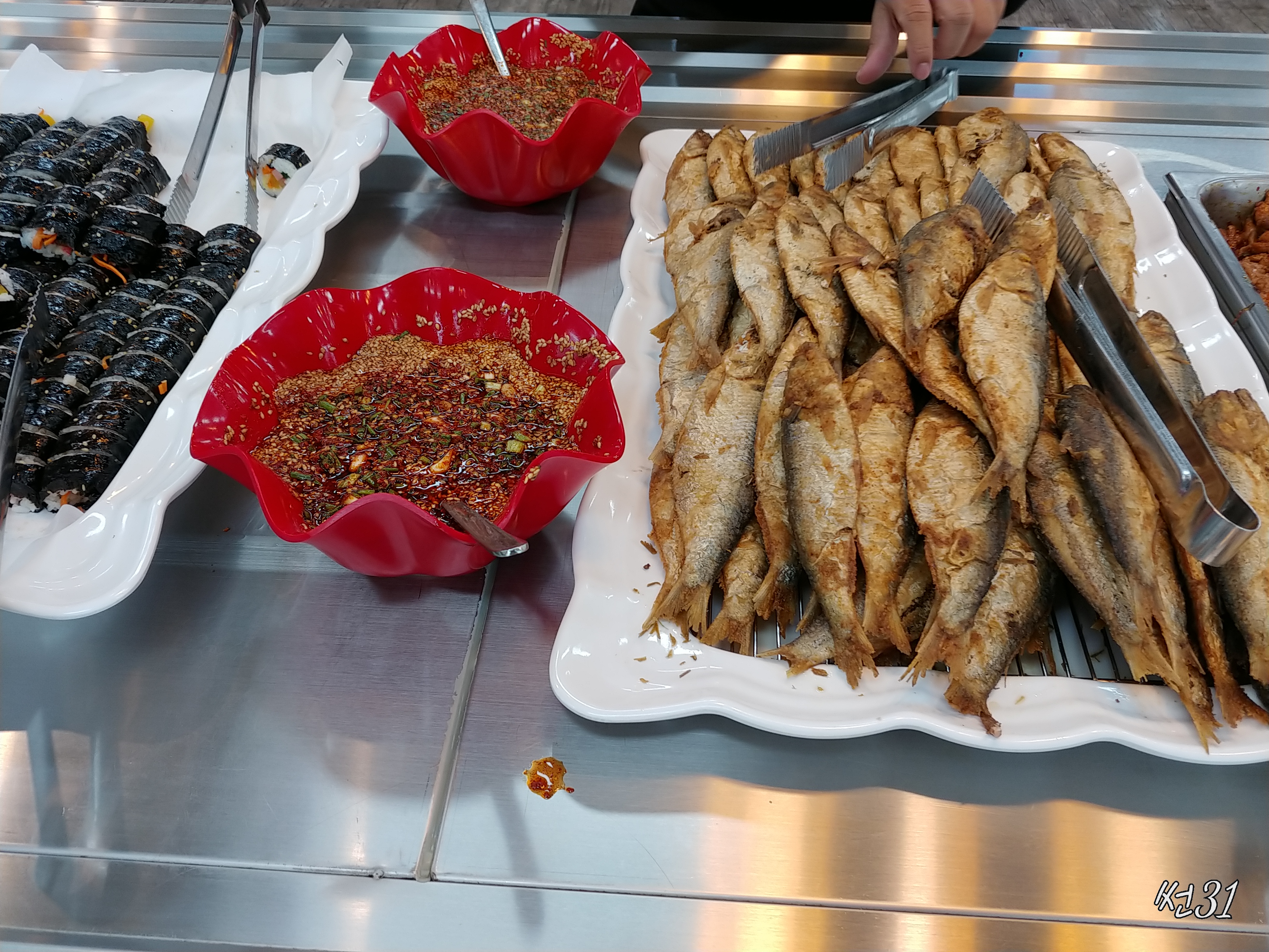 생선틔긴것도 굉장히 정성이 들어간 모습이고 김밥은 빠르게 식사하고 가실분들에게는 최고죠 그리고 라면을 셀프로 끄려먹을수있기 때문에 라면과 김밥의 테크트리로 가실분은 김밥챙겨서 라면 하나 끼려 드시면 되겠습니다.