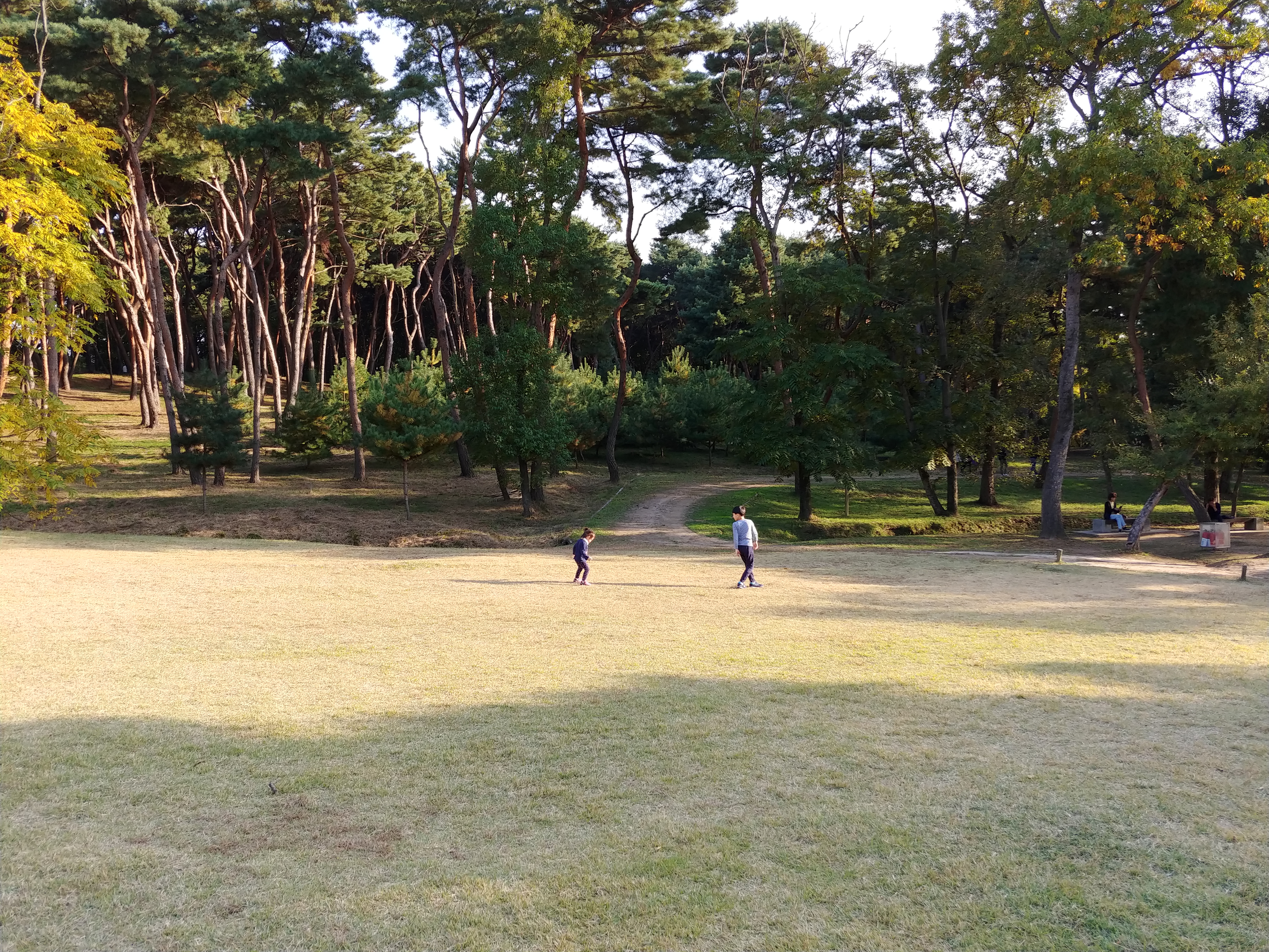 소나무 사이 곳곳에 잘 조성된 잔디밭이 있어서 마음껏 아이들이 뛰어 놀수 있습니다.