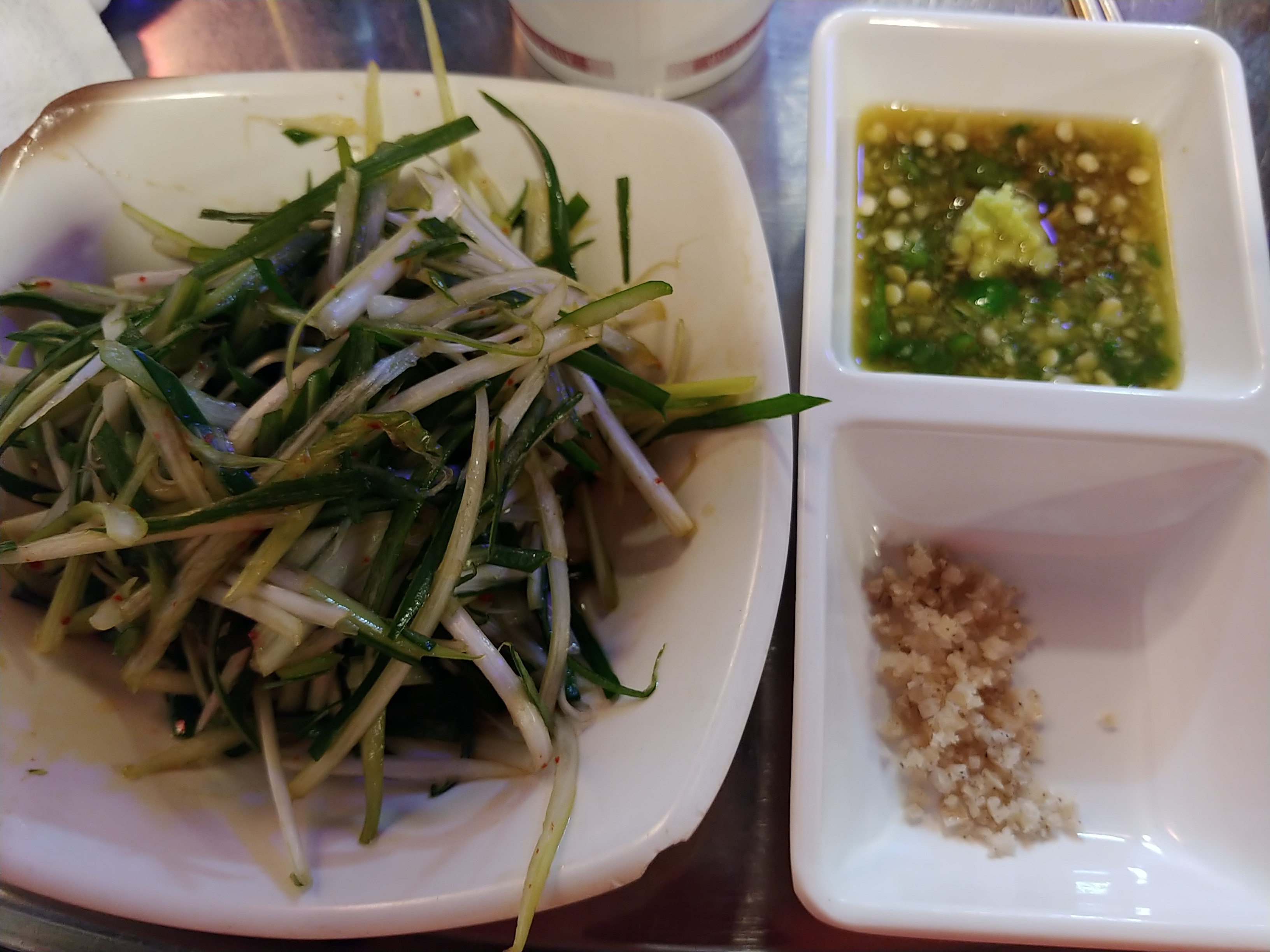 파묻침과 양념장 소금인데 양넘장이 무척 맛있어요.