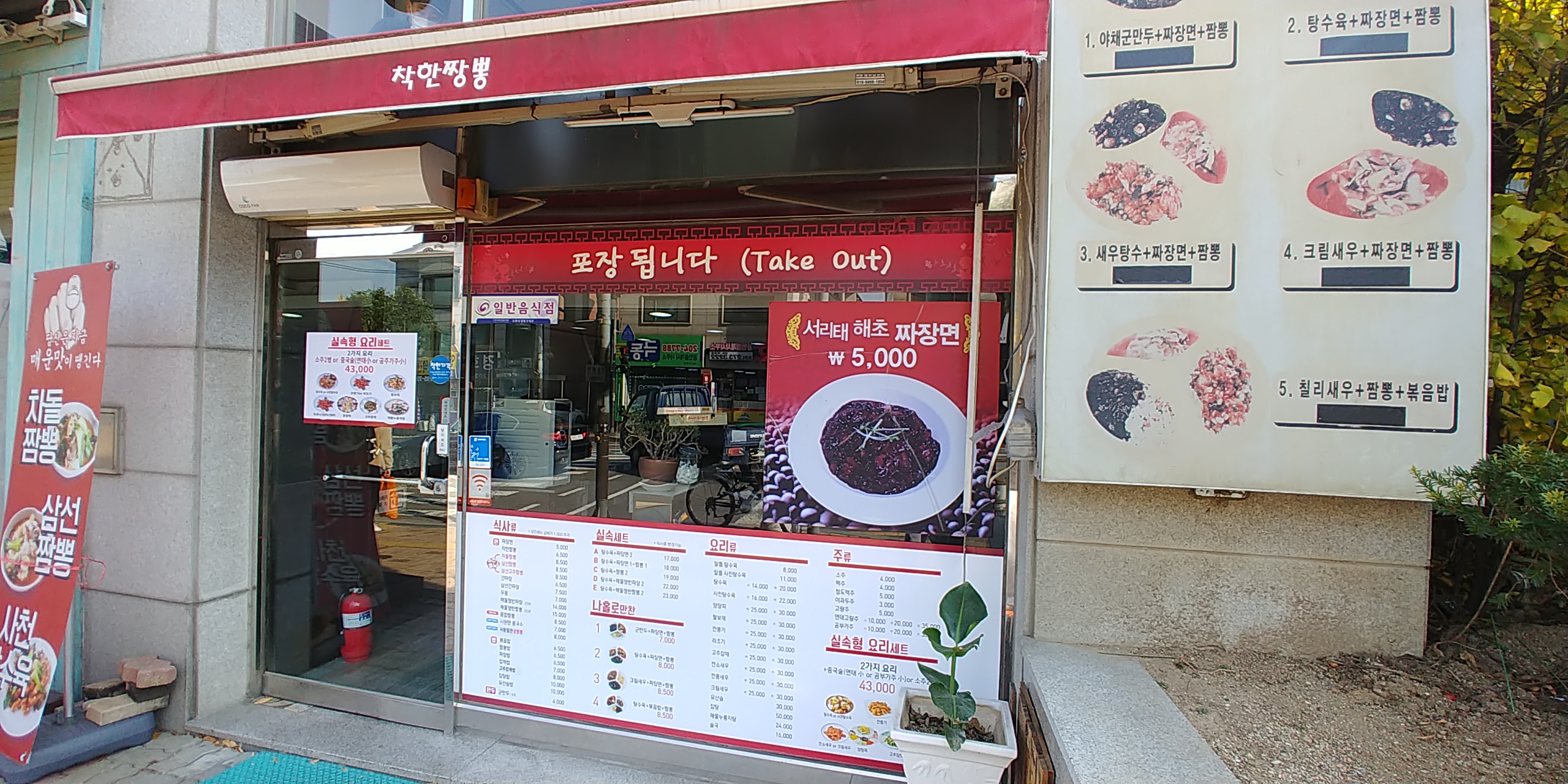 짜장면 5000원 그리고 가장 대표 메인메뉴 착한짬뽕 6500원입니다.