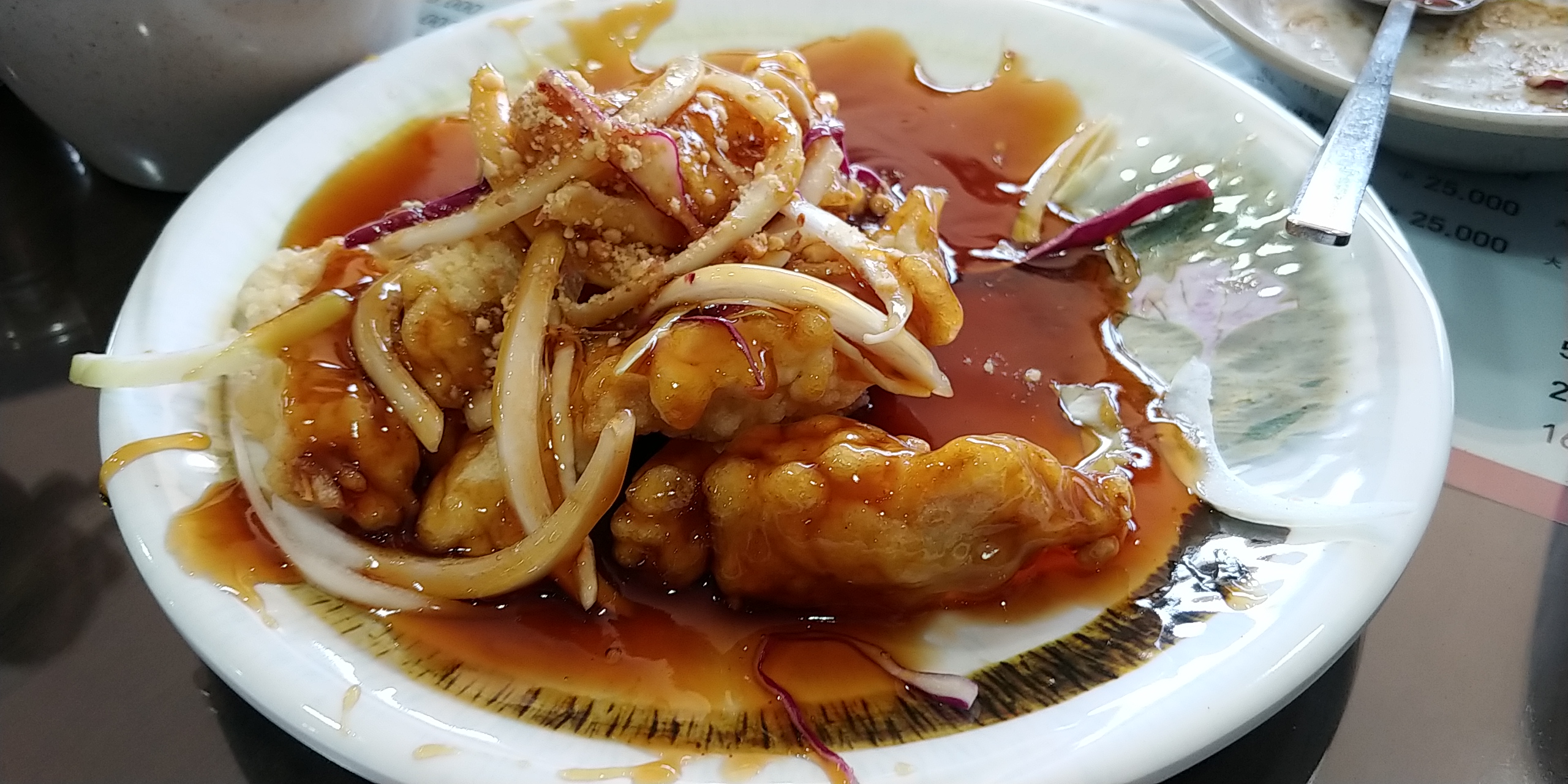 세트메뉴로 주문한것이라 탕수육이 조금 적은듯합니다. 제대로된 소 중 대 식으로 주문하면 아마도 더 크겠지만 다들보니 저희 뒤쪽 야구팀에서 온 분들도 그렇고 저희도 그렇고 거의 다들 세트메뉴로 주문을 하다가 보니 탕수육을 다들 요만한걸 드시셔습니다.
