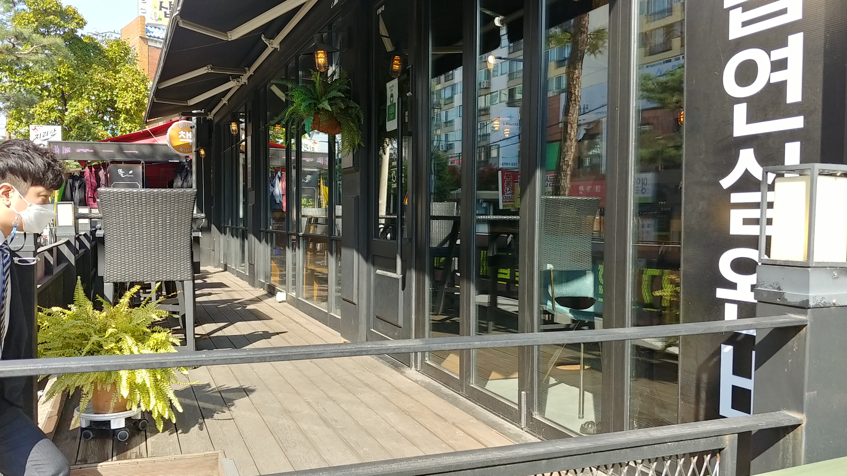 야외테이블이 몇개있습니다만 도로변 바로 옆이라 먼지다 많이나고 인도와 바로 붙어있엇 좀 뻘쭘해서 거의 잘 이용안하느듯 합니다.