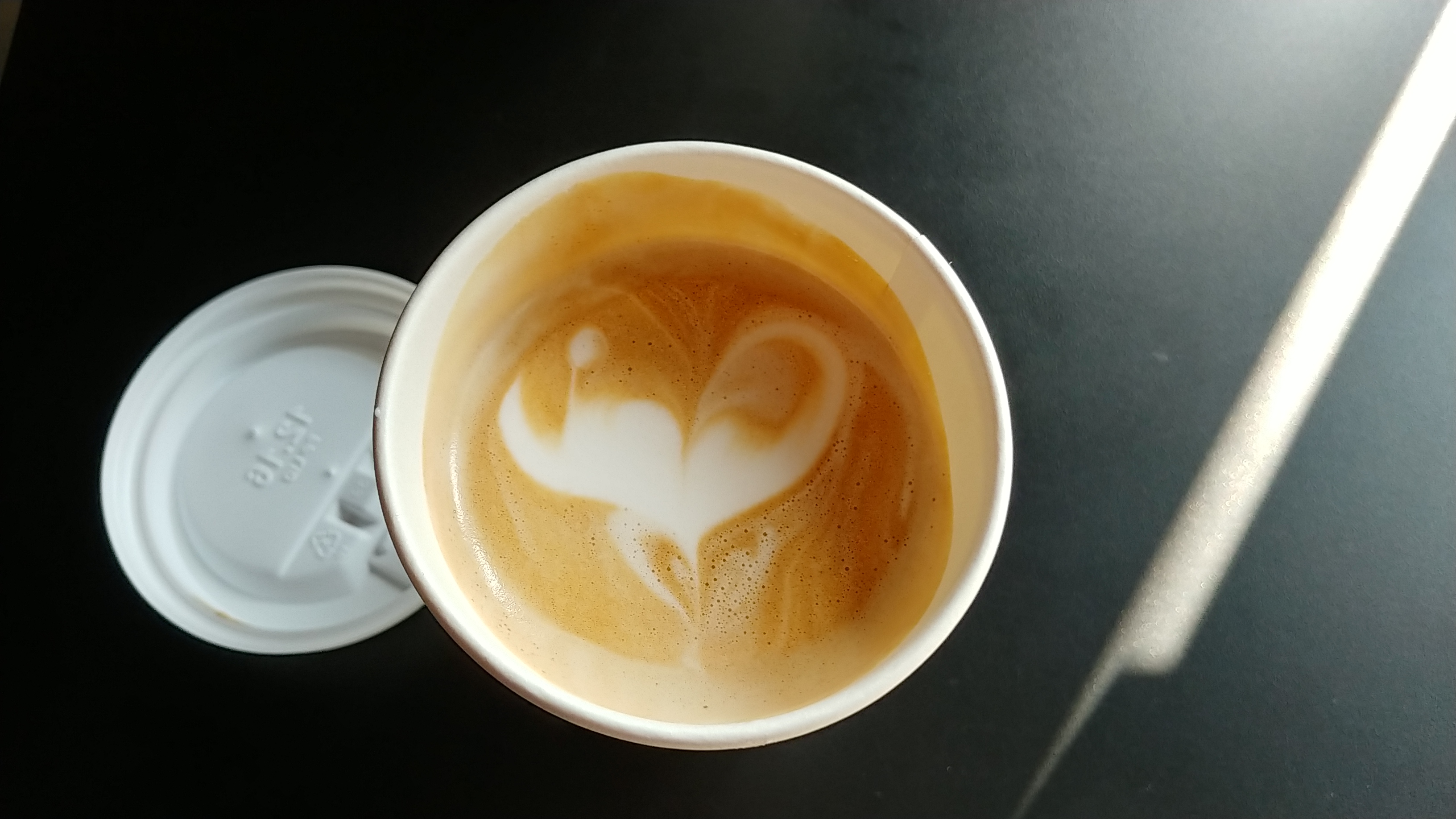 카페라떼를 받았는데 하트가 뿅 만들어져 있군요.