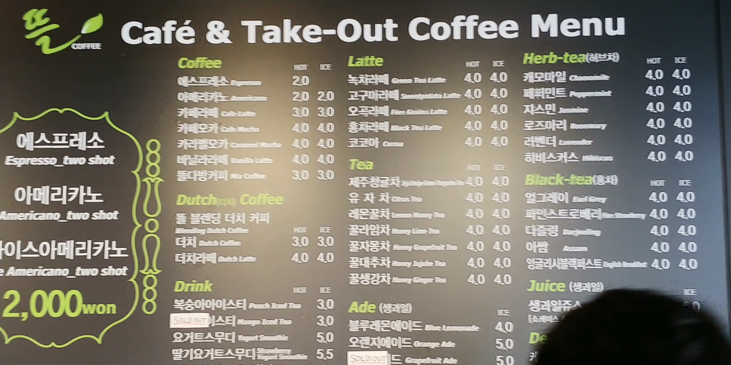 제가 좋아하는 카페라떼 3000원이고 어른들이 많이 좋아하는 달달한 뜰다방커피도 3000원이군요