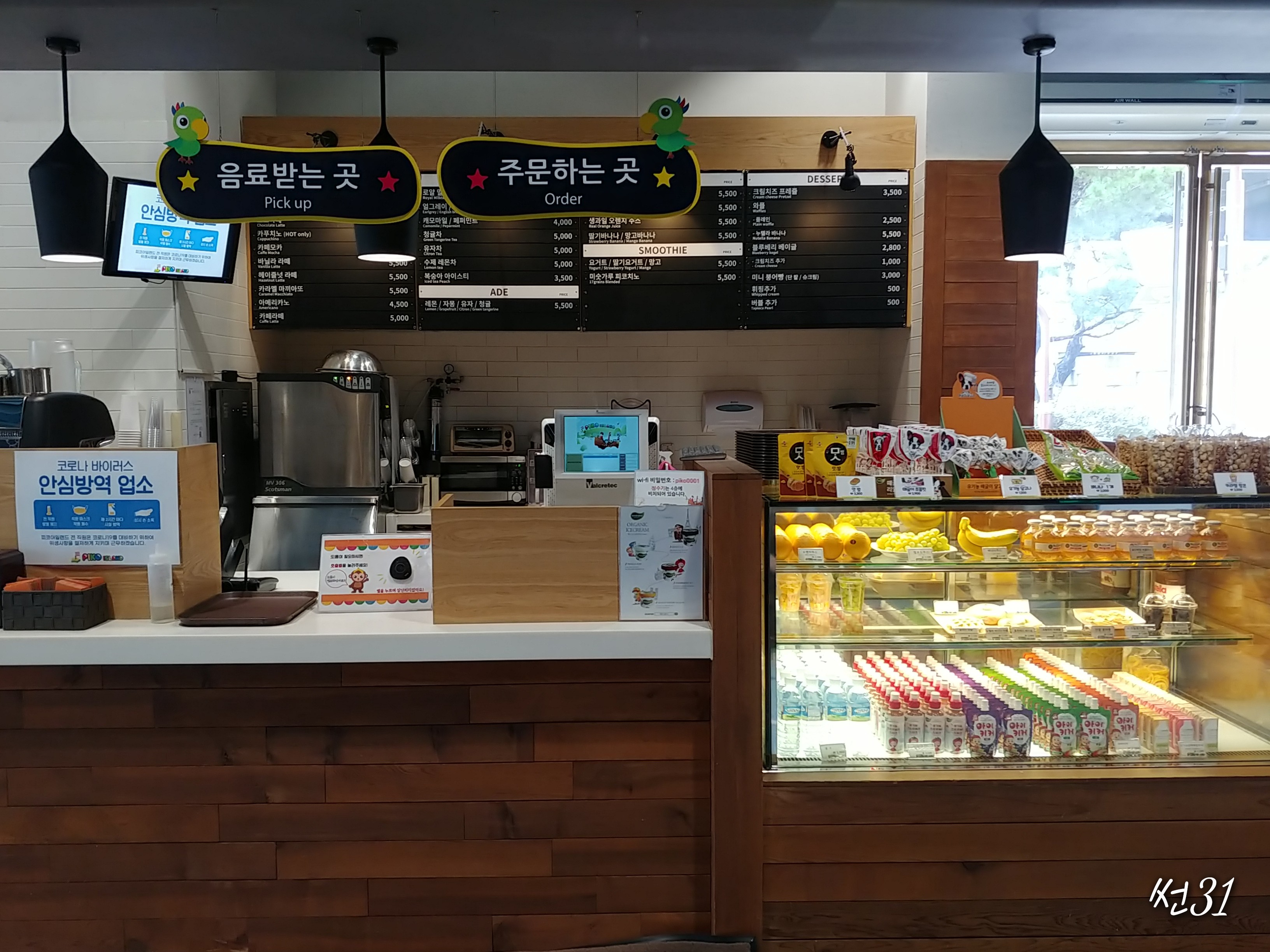 야호 해적놀이 1층놀이터 앞에는 음료와 간단한 차와 커피등을 먹고 아이들은 놀게하고