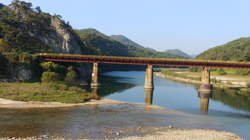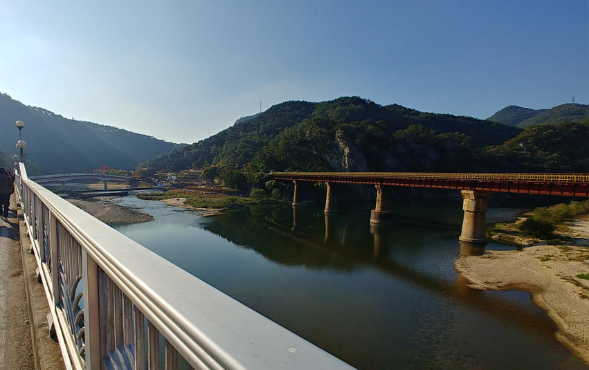 건너편에 보이는 레일바이크타고 내려오는철길 아래가