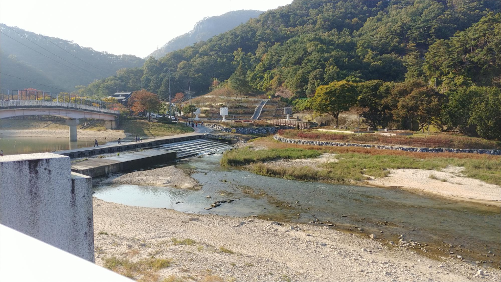 나무테크길을 따라걸으면서 흐르는강과 산새를 구경하는것만으로도 벌써 힐링이 밀려들어오는 기분이엇습니다.