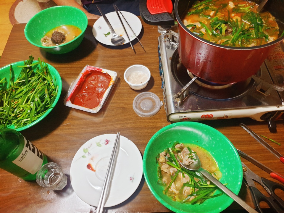 저희는 아이들 먹게 안맵게해야되서 육수만 따로 한 냄비를 준비하고 한쪽냄비에는 어른이 먹을수있게 갖은재료를 통째로 넣고 끓였습니다.