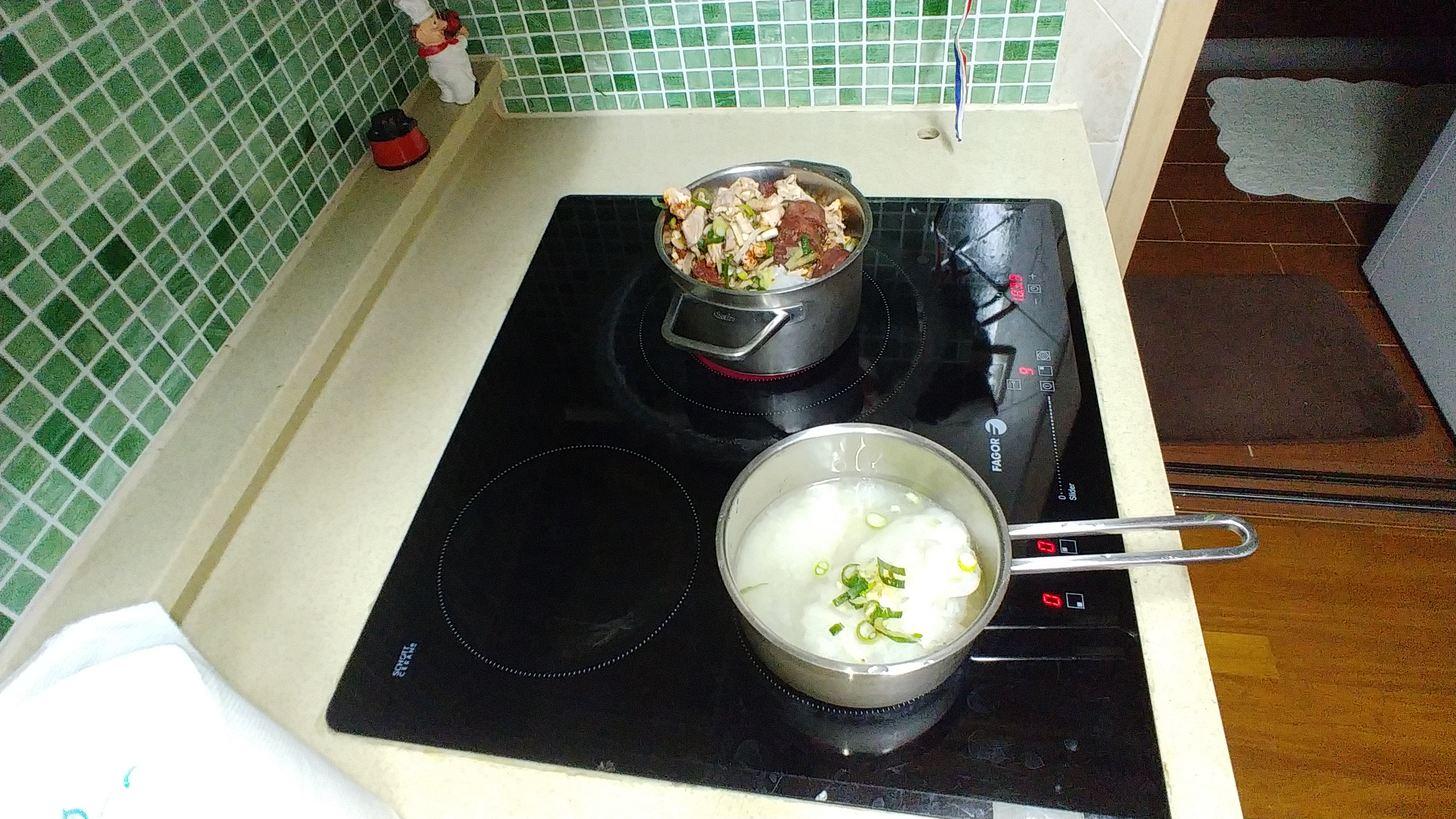 한쪽은 뽀얗게 맑게 국물 우러나는 모습이고
