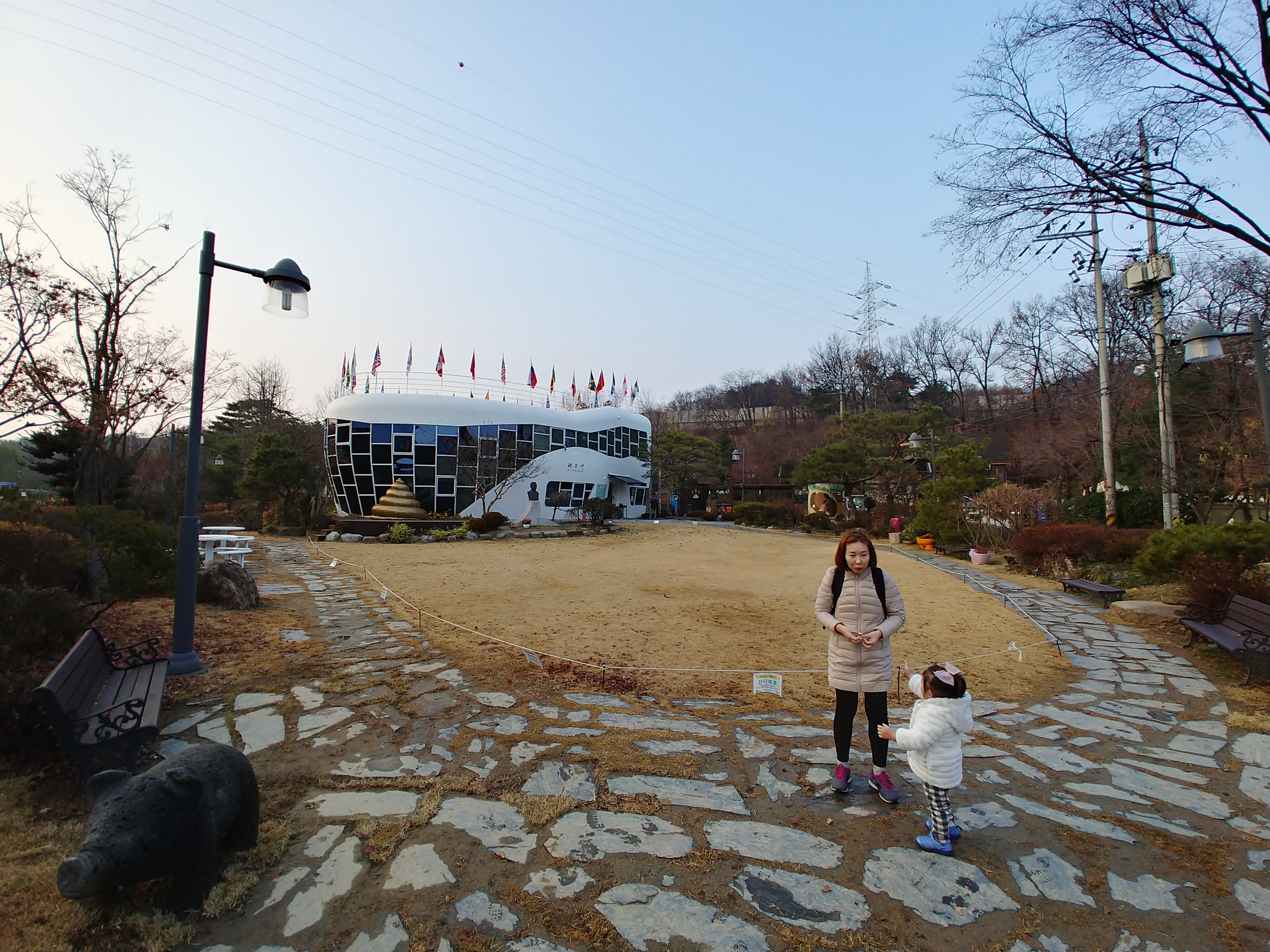 건물 앞에는 야외공원이 있는데 변기나 변기나 똥 관련된 조형물들이 가득 차 있어서 코로나때문에 실내로