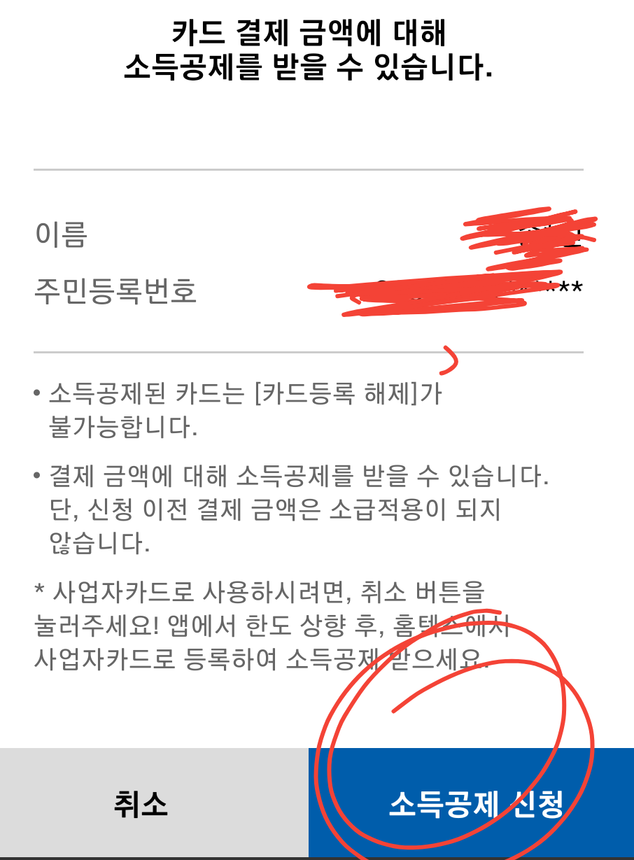 위사진처럼 신분증인증이 끝나면 소득공제 신청가능 카드가 뜹니다.