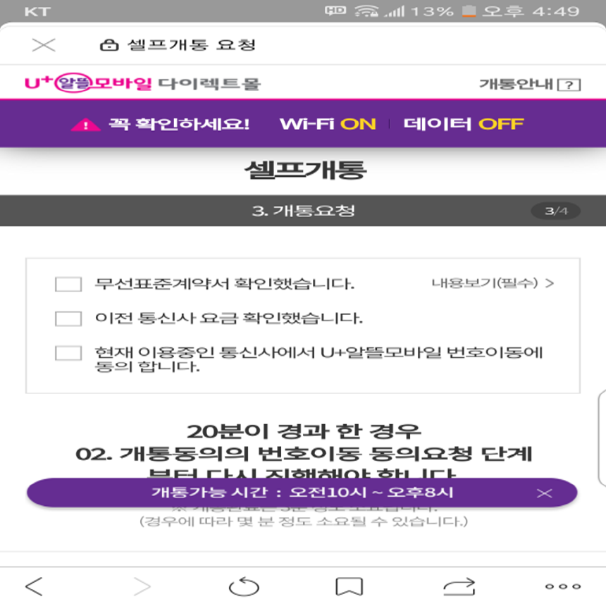 며칠이 걸릴수도 있으니 하다가 좀 안되면 전화로도 상담원의 안내를 받으면서 개통하는게 정신건강에 좋습니다.