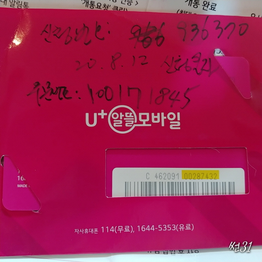 카드 뒷면에 노랜색으로 표시된 숫자를 셀프개통할때 선택해주면 됩니다.