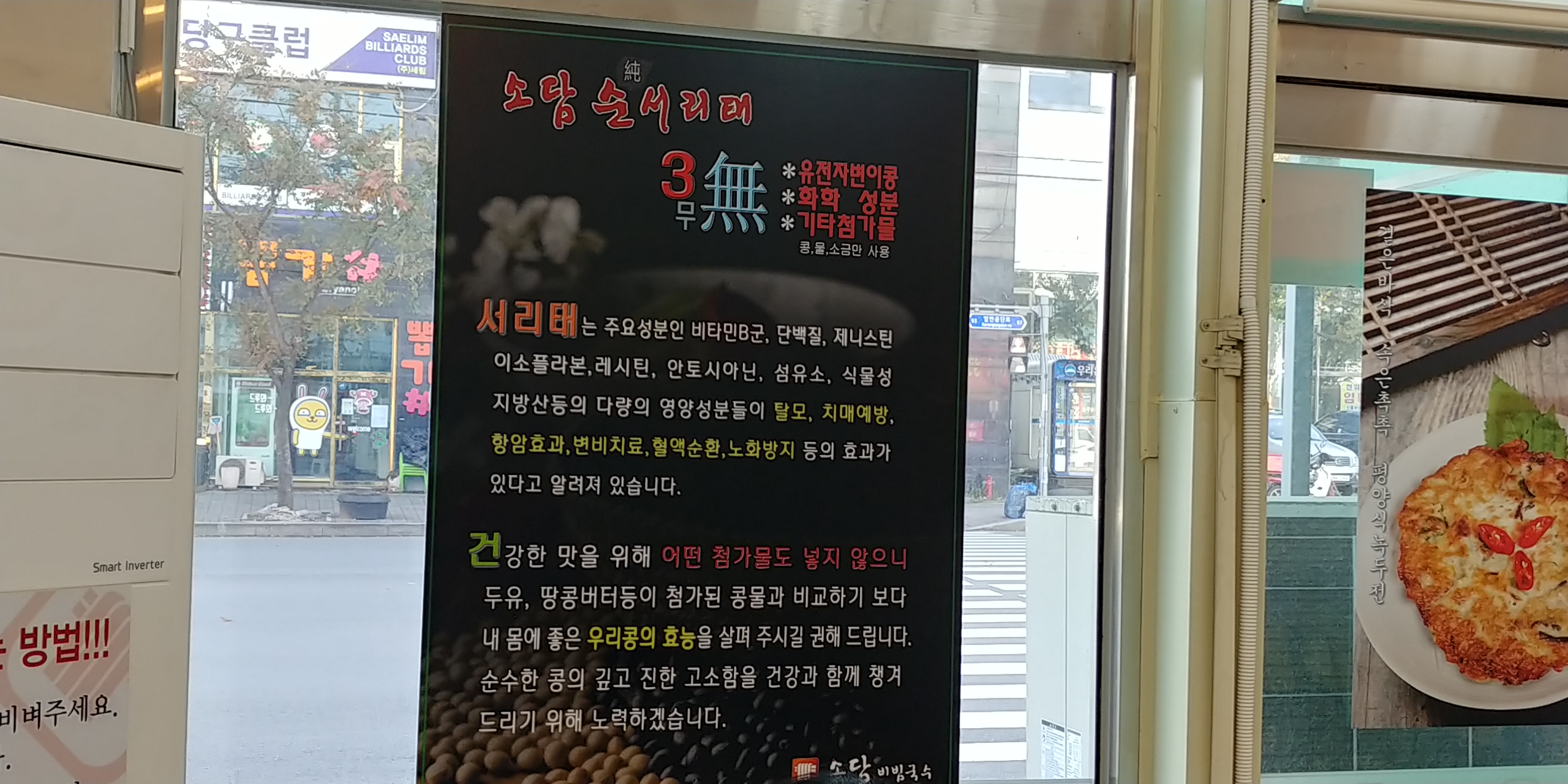 전용주차장이 건물뒤에 위치해 있고 새로 밀고 있는 메뉴인지 현수막으로 소담진칼국수 (소담찐칼국수로 했으면 어떻을까 싶군요)