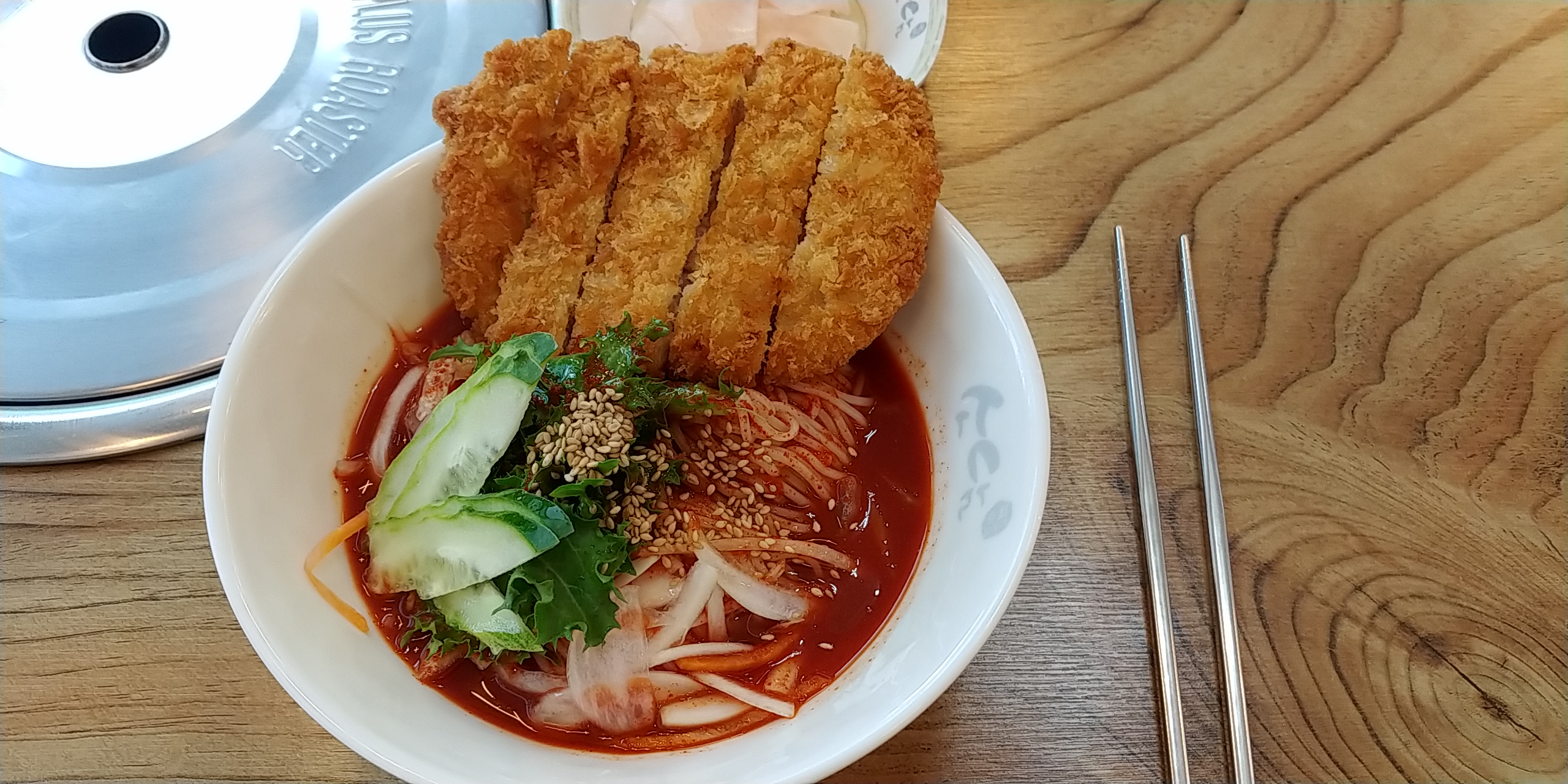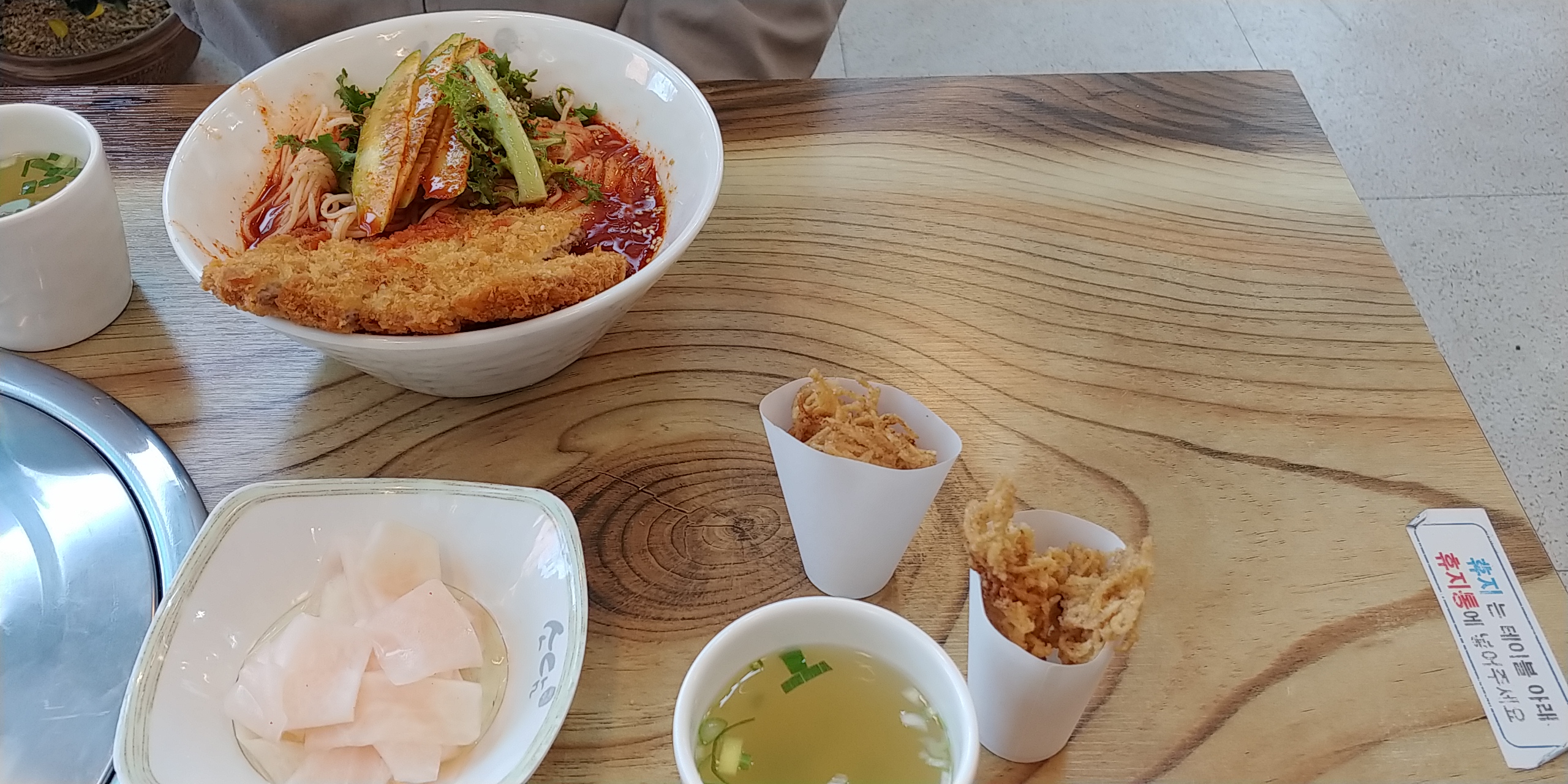 돈까스와 비빔면이 잘 어울릴까 의구심이 들었는데 딱 잘 맞아떨어지는 맛입니다.