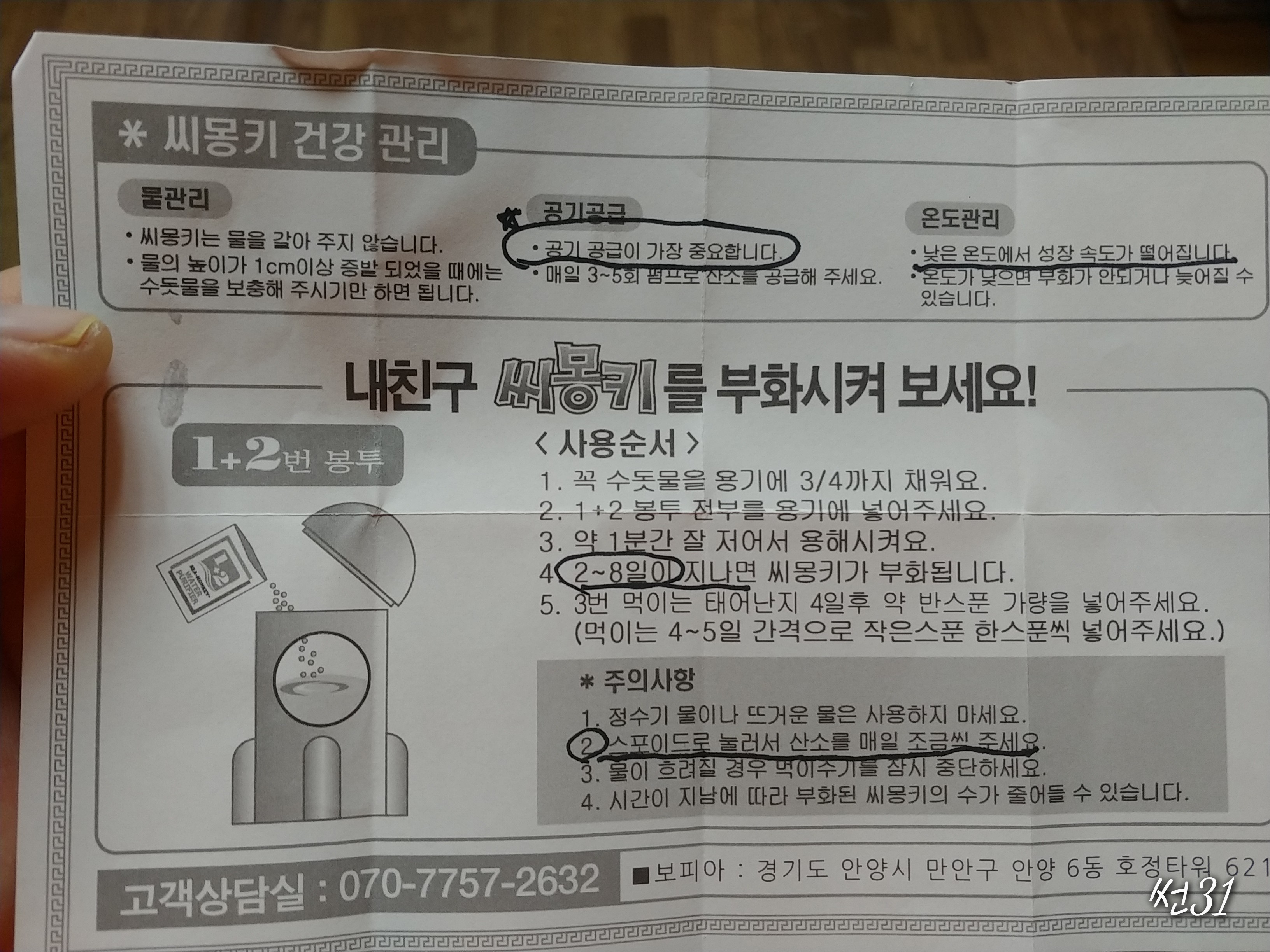 부화되고 먹이주고 공기펌프질도 해주고 물이 줄면 물 보충해주면 됩니다.