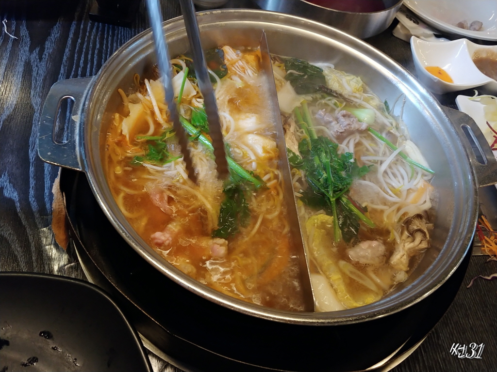 반반씩 육수가 있어서 취향에 맞게 맘에 드는 야채를 듬뿍 넣고