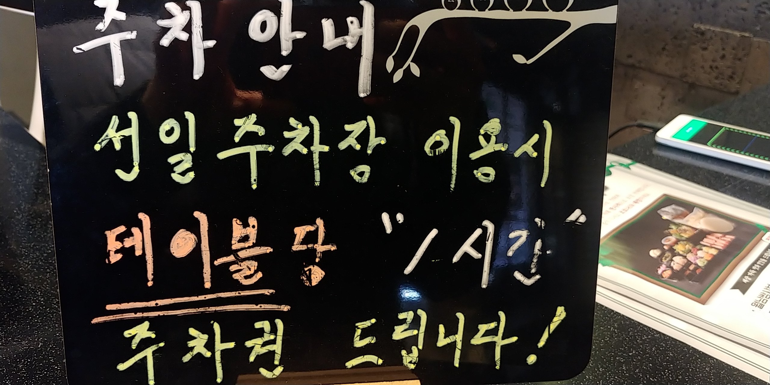 보통 선일주차당에 주차하고 가게오면 10분지나고 밥먹는데 보통 1시간 먹으니 음식점 나가서 다시 선일주차장까지 10분 그럼 어지간해서는 한시간 넘어가요. 근데 이게 주차료가 비싸서 10분당요금이 비싸서 가끔 차몰고 갈테면 추가로 주차요금 4000원 가까이 내는경우가 많아서 왠만하면 걸어가든가 일부러라도 다이소가서 물건을 사서오는경우가 있을정도입니다.