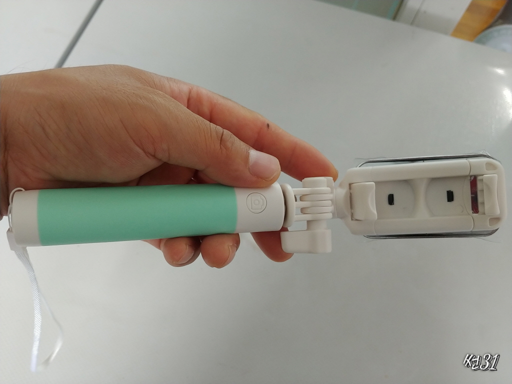 촬영방법은 손잡이쪽에 촬영버튼이 있어서 3단으로된 막대를 쭉 펴서 셀카사진구도를 잡은후