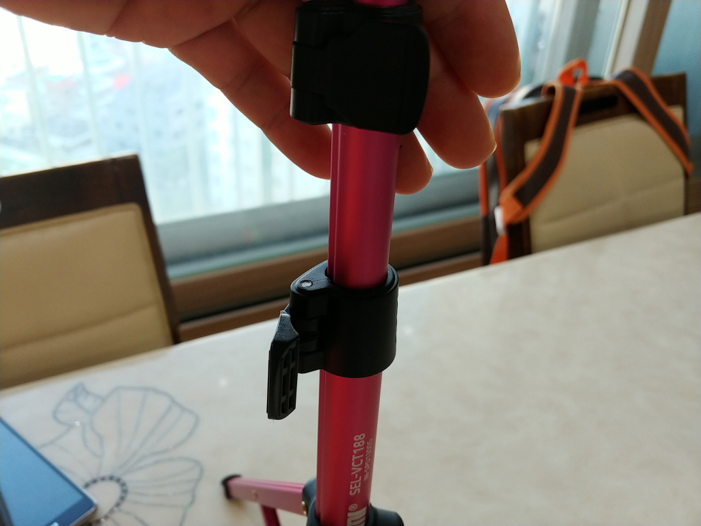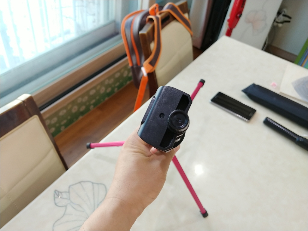 ![]() 위에서 본 모습인데 윗부분을 돌려서 빼고 스마트폰 휴대폰을 고정하고 다시 조으면 되는 타입입니다. ![]() 밑에 삼발이 삼각대 아직 덜 편모습인데 |