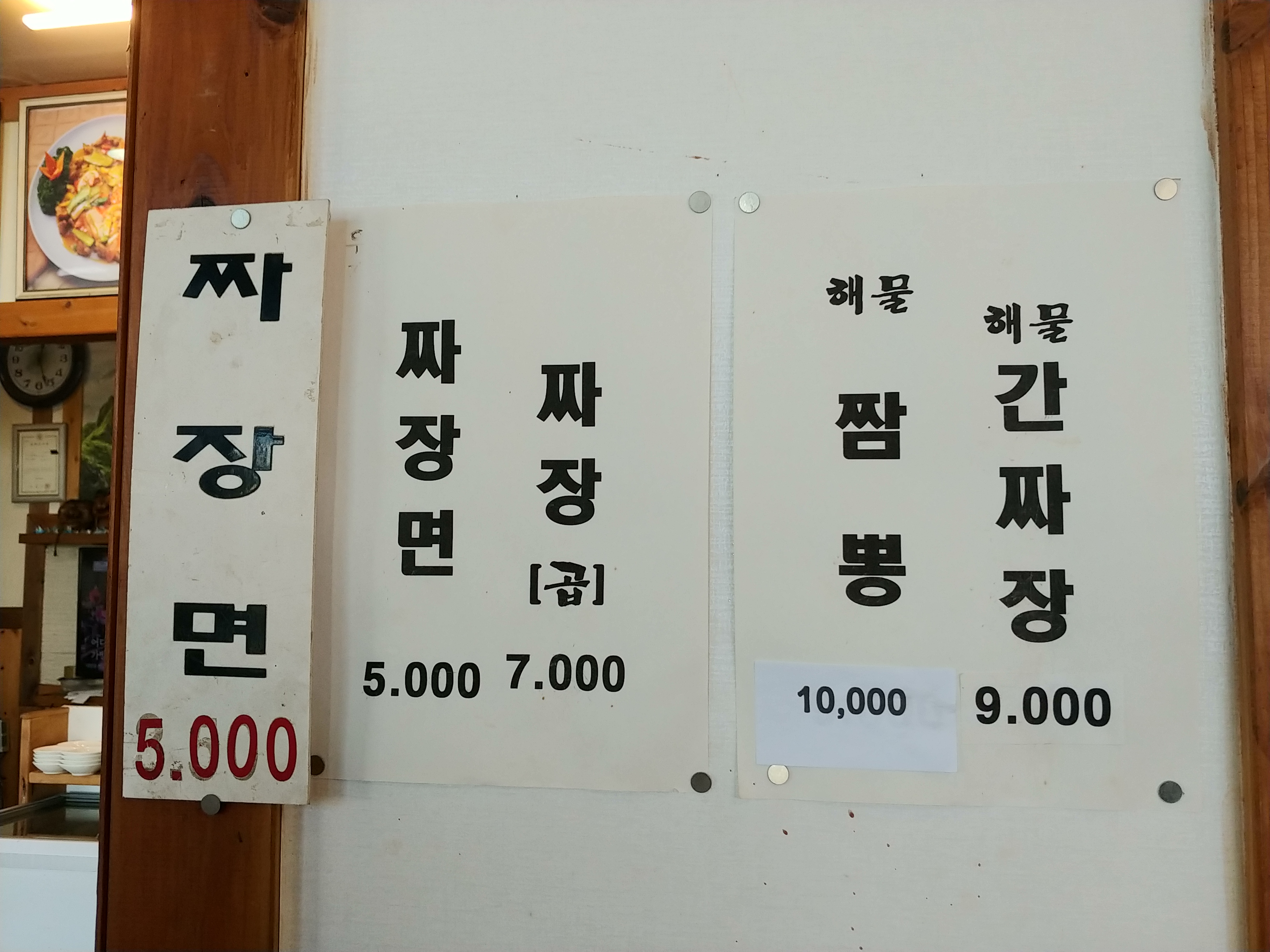 짜장면 5000원 짜장면 꼽빼기 2000원추가