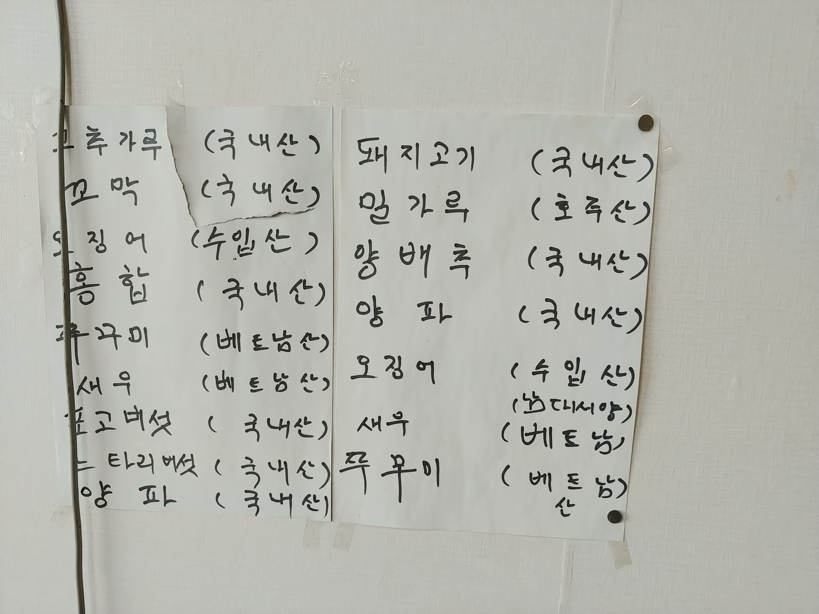 쭈꾸미 새우 오징어 정도만 베트남을 쓰는군요.