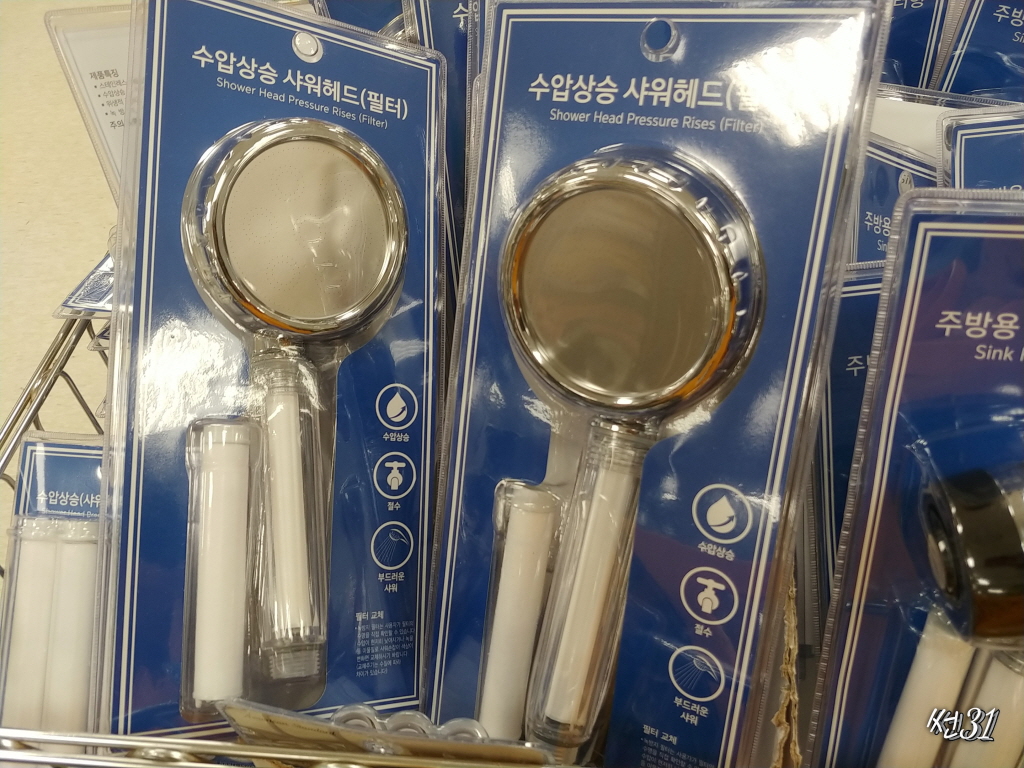 수압상승 샤워헤드도 있고 주방 싱크대용도 있고 제가 산것은 금색테가 둘러진건데