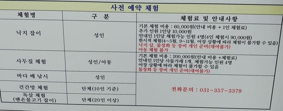 마을에서 운영하는 어촌계에서 준비해서 하는 체험을 하는경우입니다.