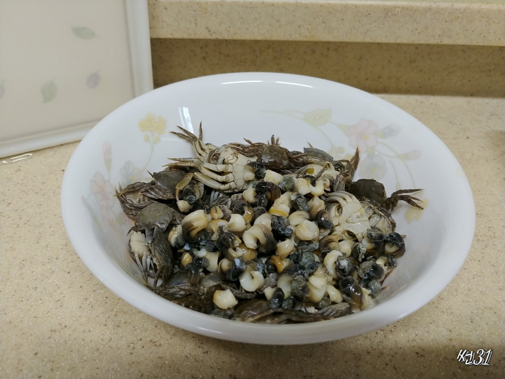 꽤 먹을 만한 모양새입니다. 게도 같이 수돗물에 20분간 두어서 모아둡니다.