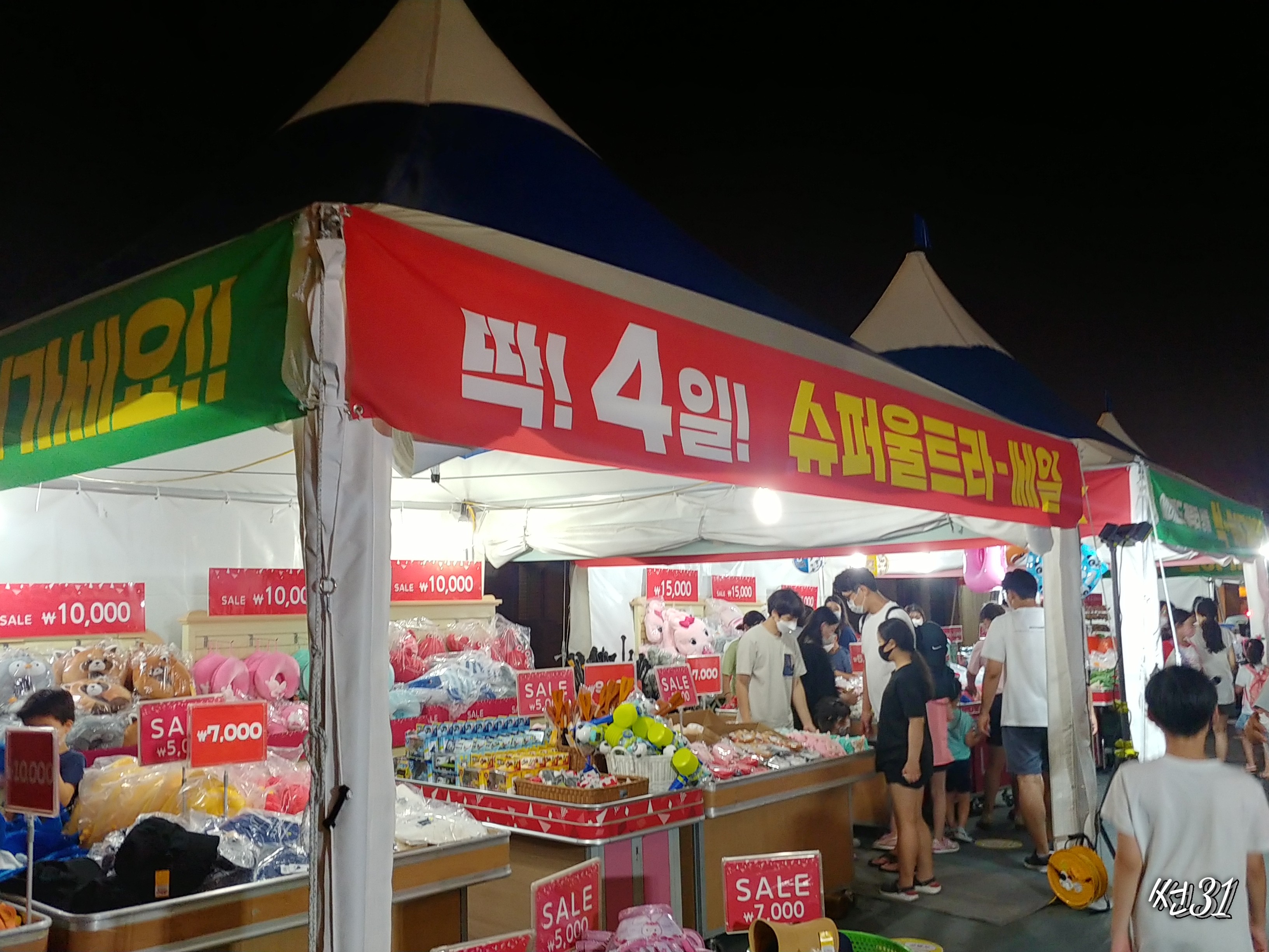천막을 몇개쳐놓고 장남감을 팔고 있었는데 굉장히 저렴하고 종류도 여러개 팔았는데 어떤것은 굉장히 저렴했고 어떤것은 할인율은 많은데 워낙 초기값이 높게 형성되있다보니 할인을 크게 해도 좀 비싼 느낌을 받는 제품도 있었습니다.