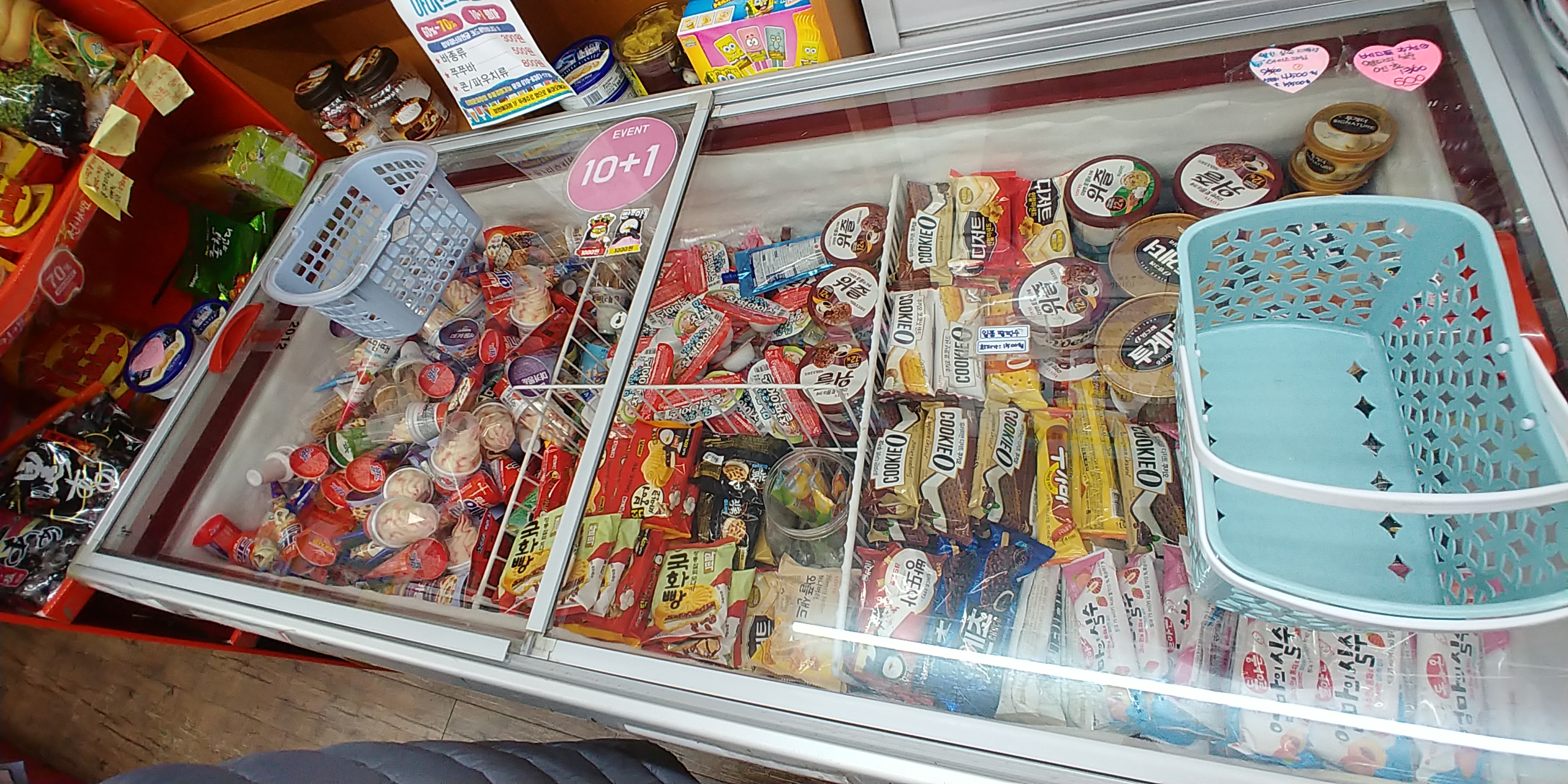 아이스크림은 좋아할만한 것만 사장님이 몇종류 선정해서 파는데 제가보니 그렇게 종류가 많치않아서 아이스크림은 그냥 다른데서 사는게 나을거 같아요. 그리고 개인적으로 생각해볼때 아이스크림은 그냥 빼고 세계과자나 여러가지 과자젤리초콜릿같은 그런 종류를 더 채우거나 통로를 좀 더 넓히는게 낫지 않을까 싶습니다.