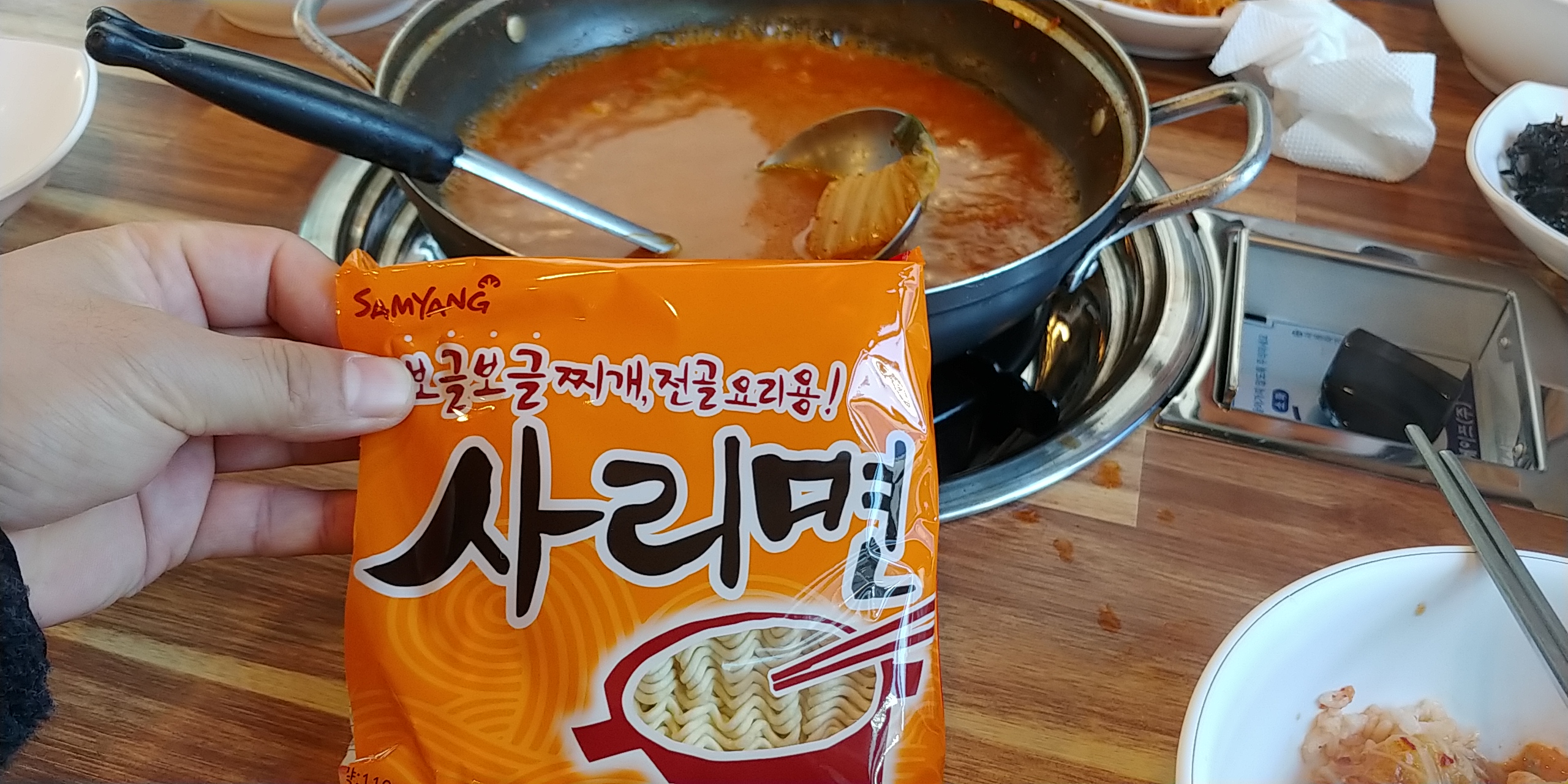 2인분인데 량은 좀 부족하고 라면 사리 하나는 추가해야 될거같아요.