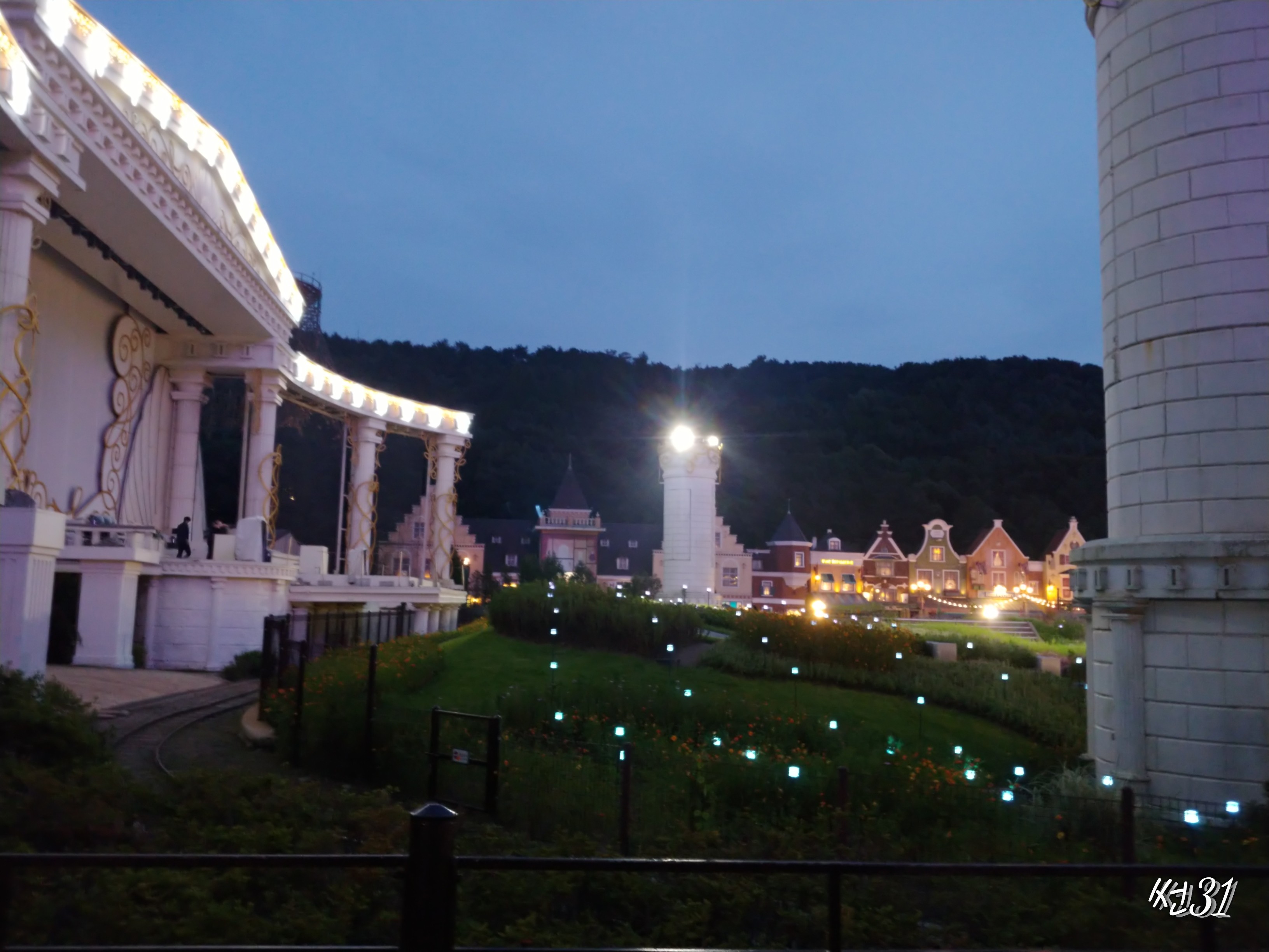 건물을 유럽풍으로 지어놓아서 안그래도 유럽느낌이 나는데 밤이 되어 주변이 어두워지면 유럽도시 한가운데 와있는듯한 착각이 들정도 환상적은 분위기를 묘사하는 것이 에버랜드 야간개장의 장점이라고 할수있어요.