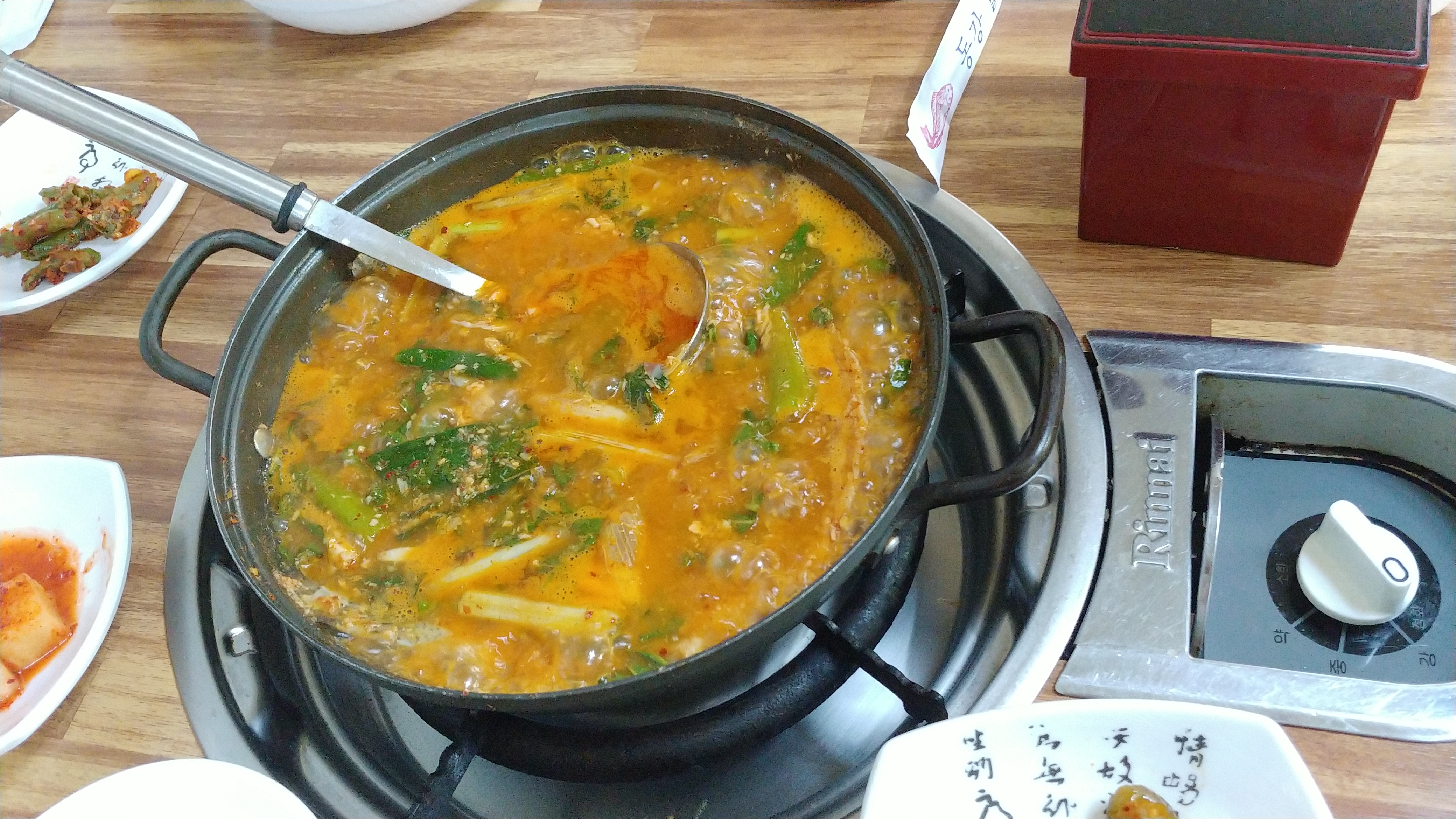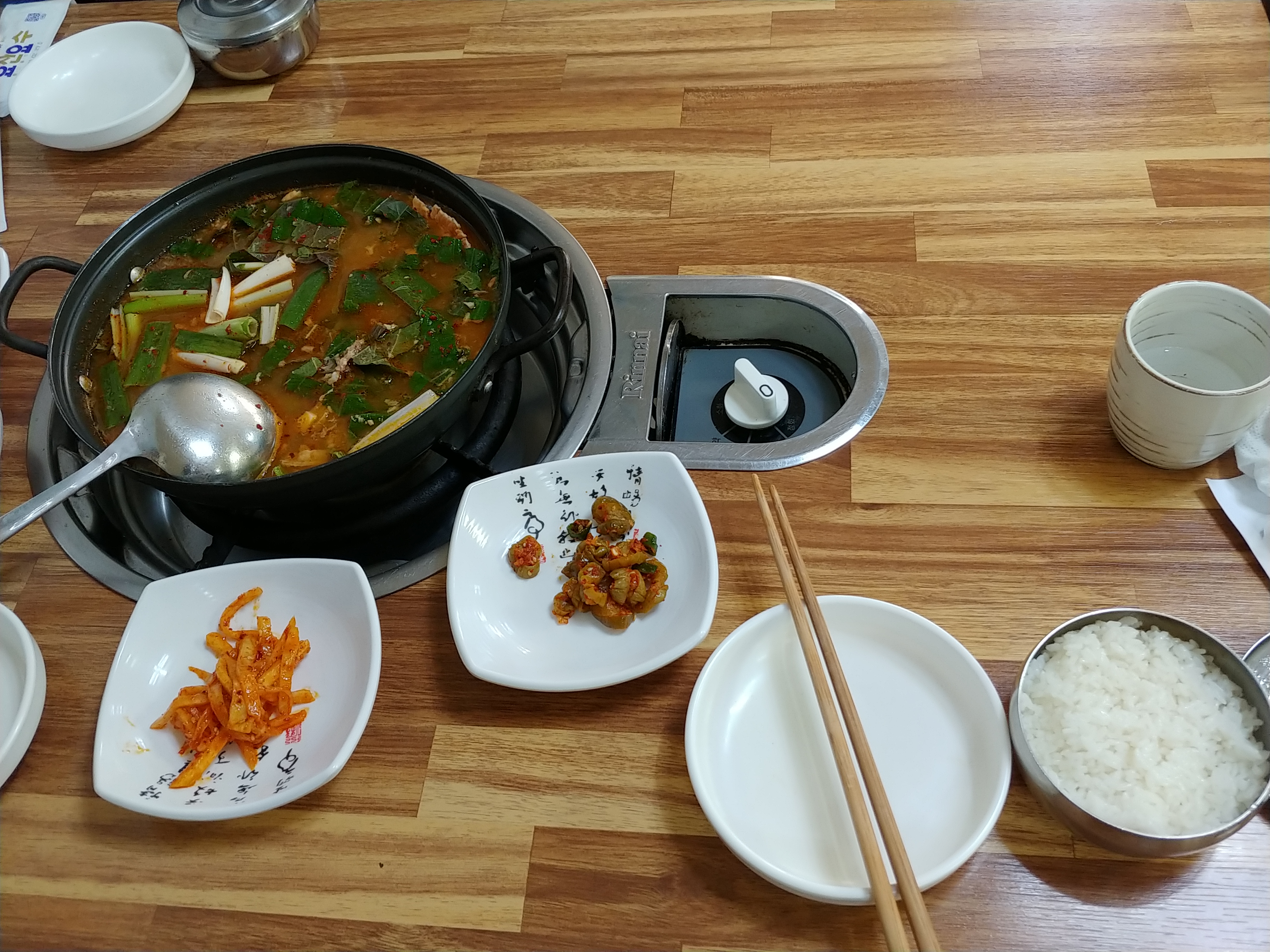 매운탕 나오면 송어회덮밥 먹고 나서 그 잡은 송어로 매운탕을 해주는데 파가 크게 위로 올려져 있고 국물도 진한고 깔깔한것이 매운탕만 먹어도 한끼 식사가 될정도이고 이렇게 좋은 차림으로 나오다보니 송어회덮밥으로 밥한공기먹고 매운탕으로 나오면 또 밥 반공기 혹은 한공기를 먹게되니 밥도둑 간장게장 못지않습니다.