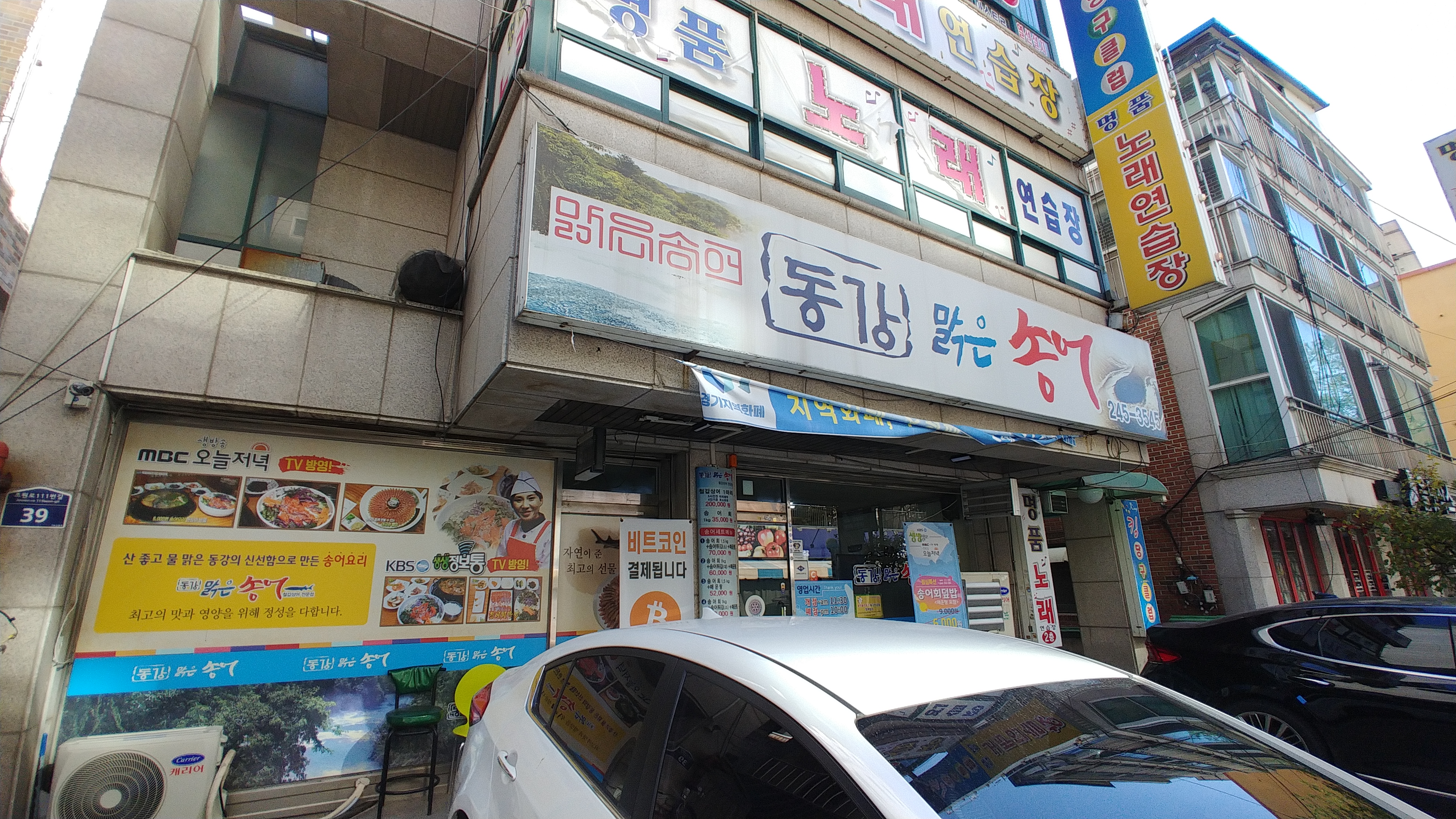 화장실은 위사진에서 명품노래방간판쪽 건물입구로 들어가면 1층과2층사이에 위치하고 있습니다.