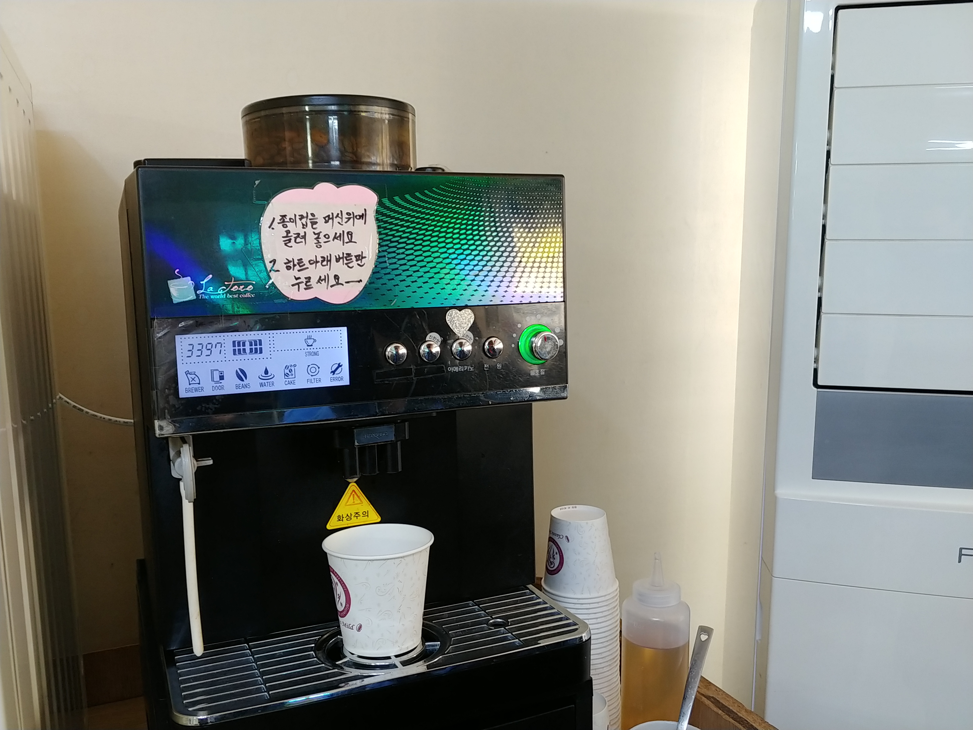 다먹고 나오면 커피있는데 고급스러운 커피머신이군요. 커피 한잔 딱 먹으면서 나오면