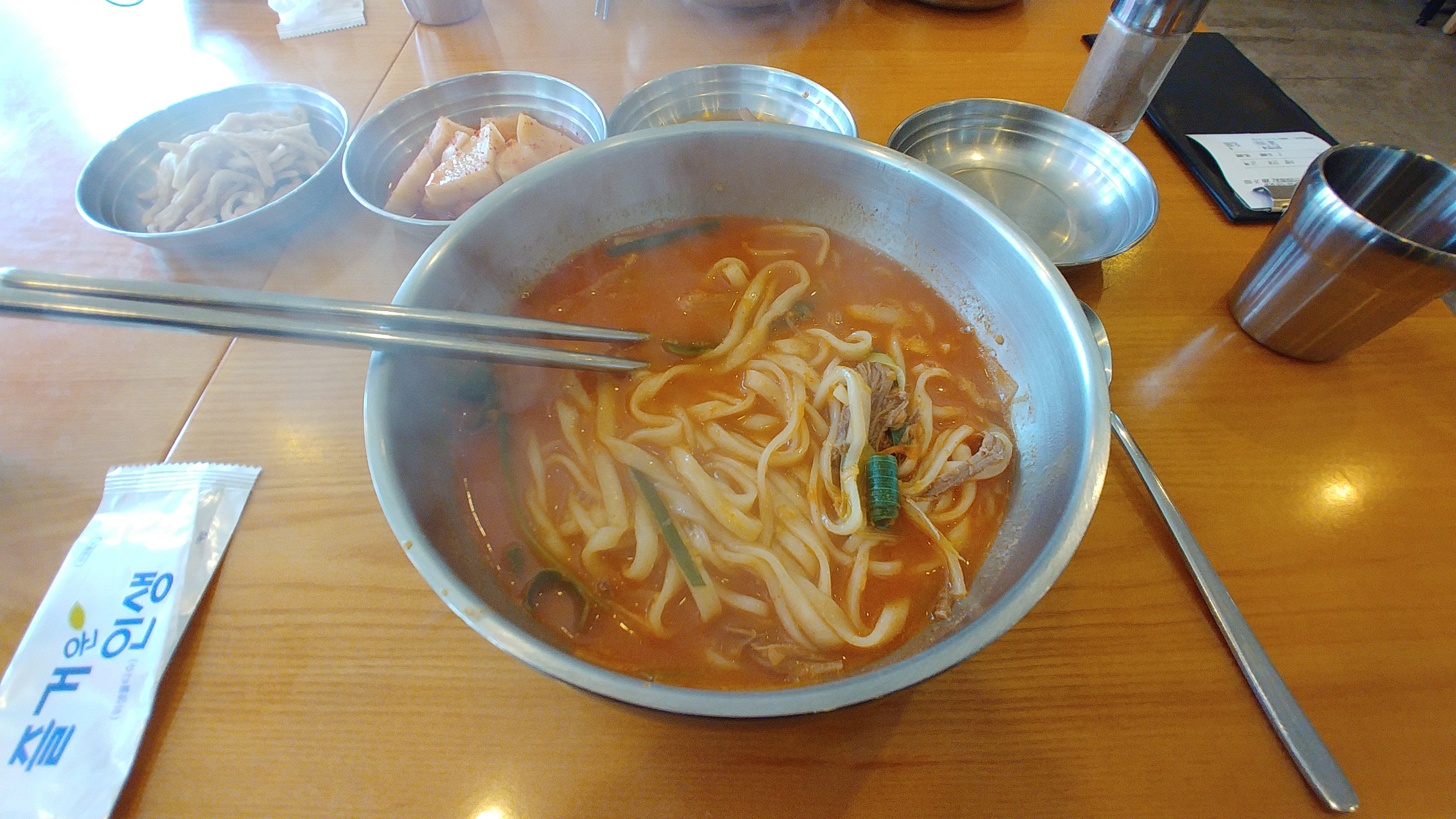 반찬으로는 오뎅 깍두기 간장양파 나오는데 깍두기가 맛있어요.